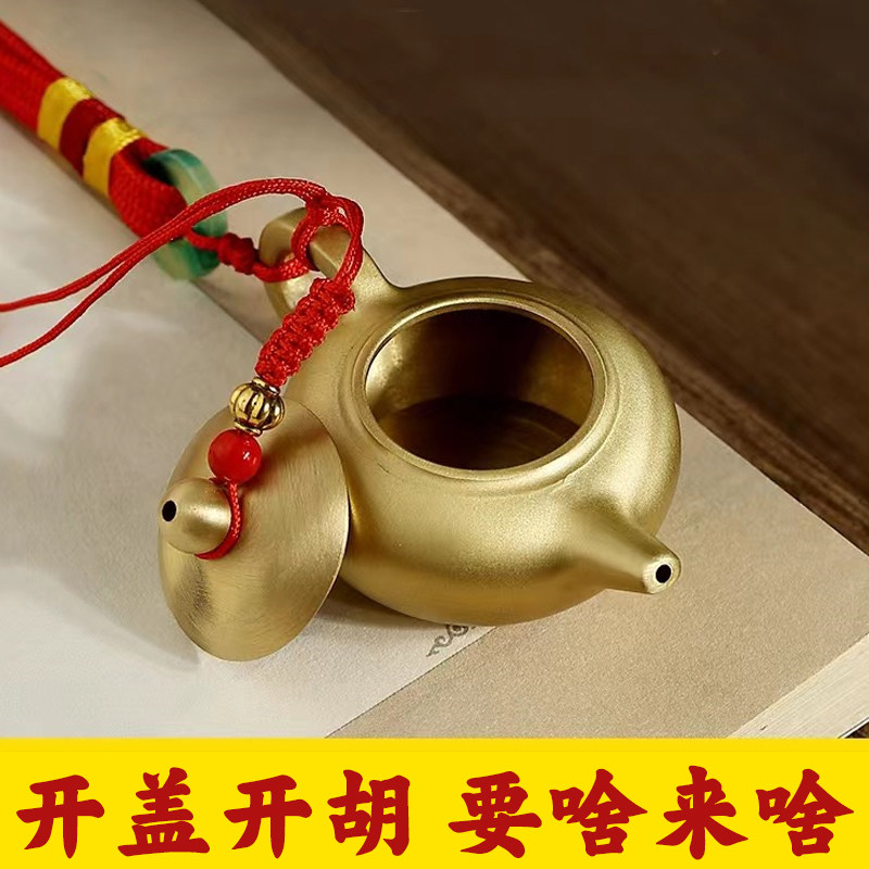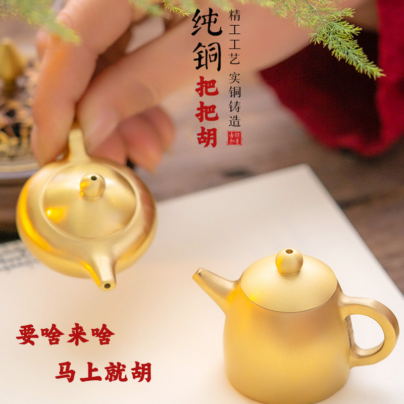 把把壶手把件纯黄铜桌面摆件可旋转打麻将马上胡赢钱减压神器玩件