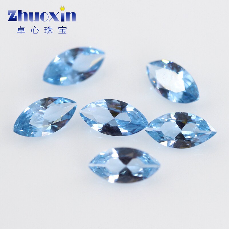 马眼形106#蓝尖晶石裸石钻 叶子形浅蓝色宝石手表吊坠戒指饰品diy