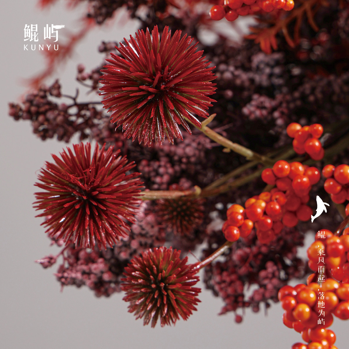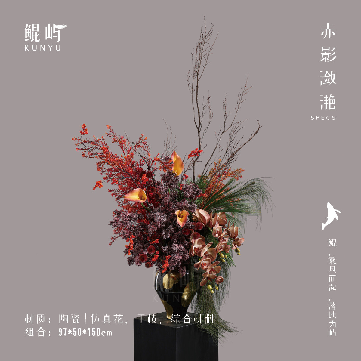 鲲屿 新中式红色系仿真花摆设【赤影潋滟】酒店大堂别墅高级摆件