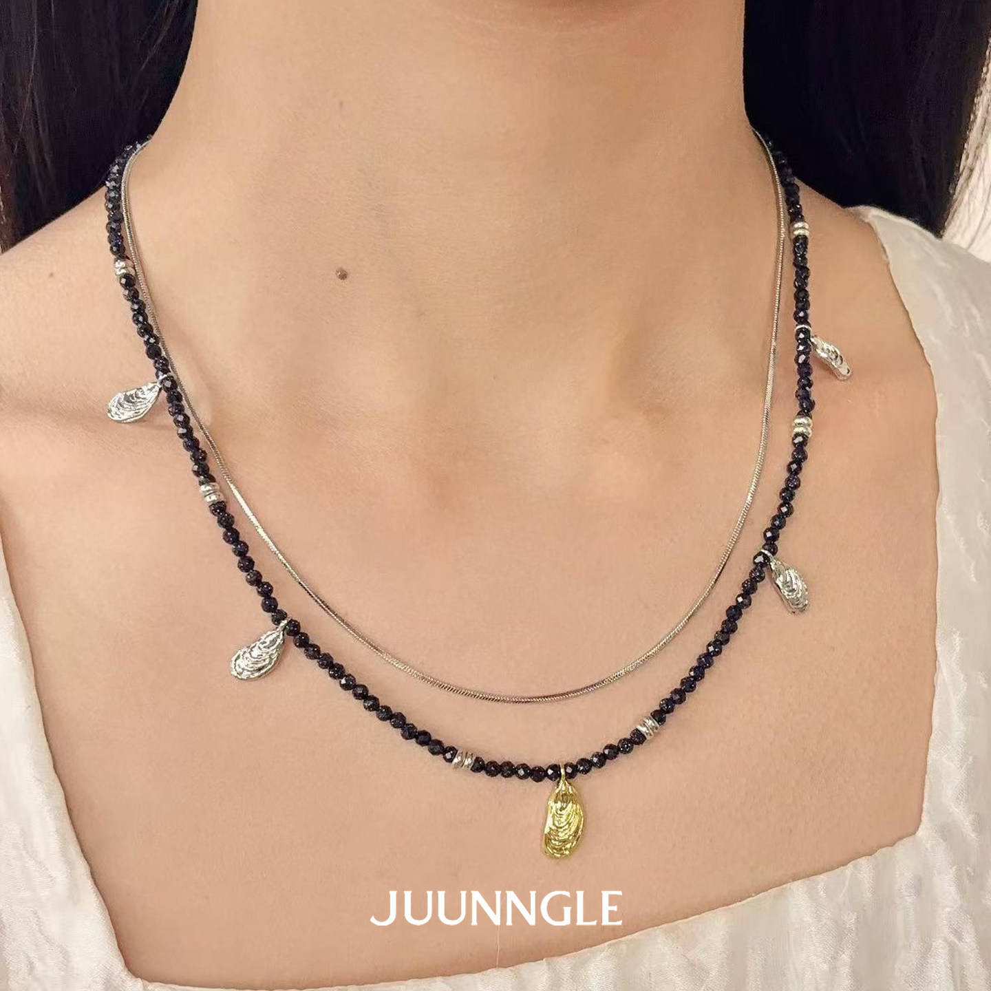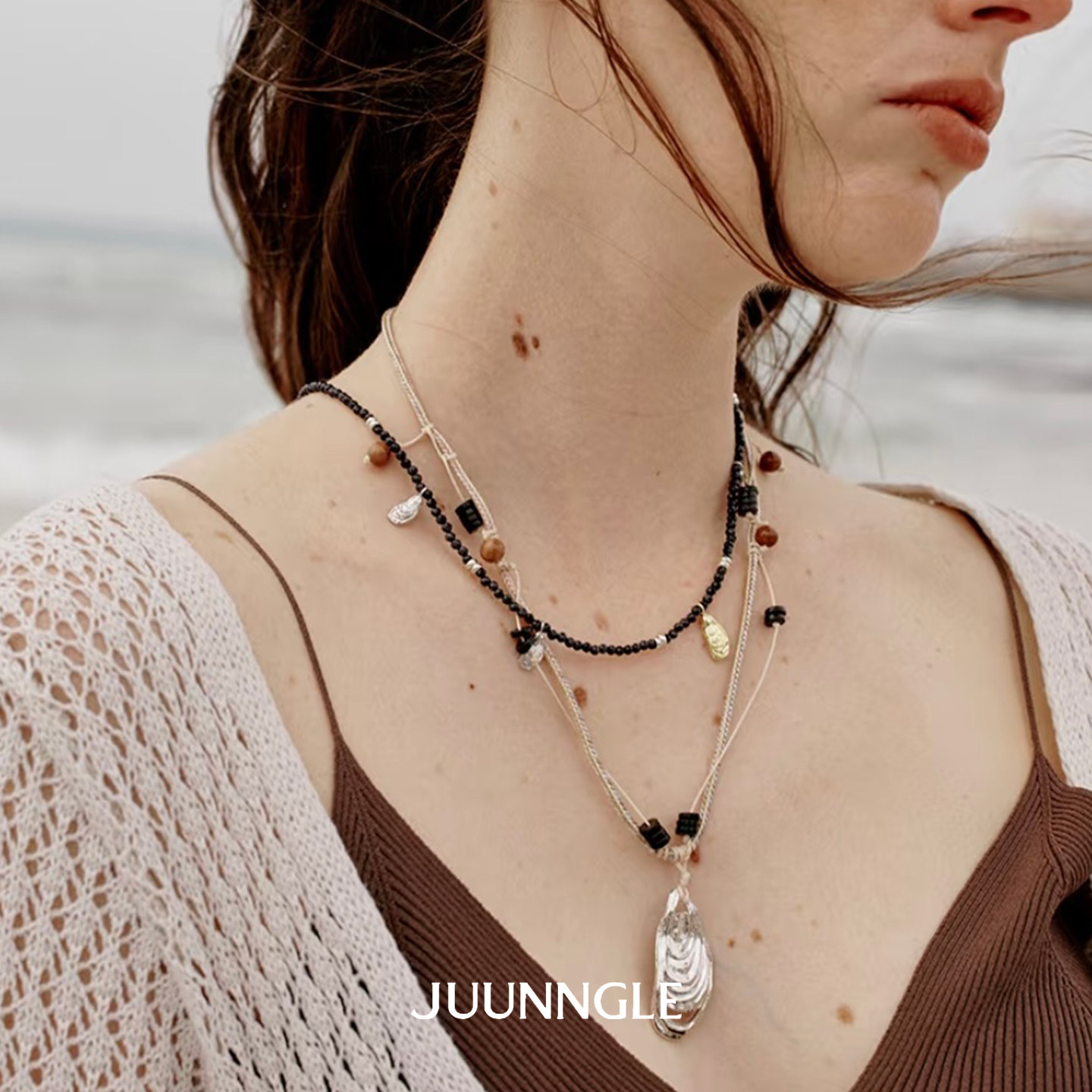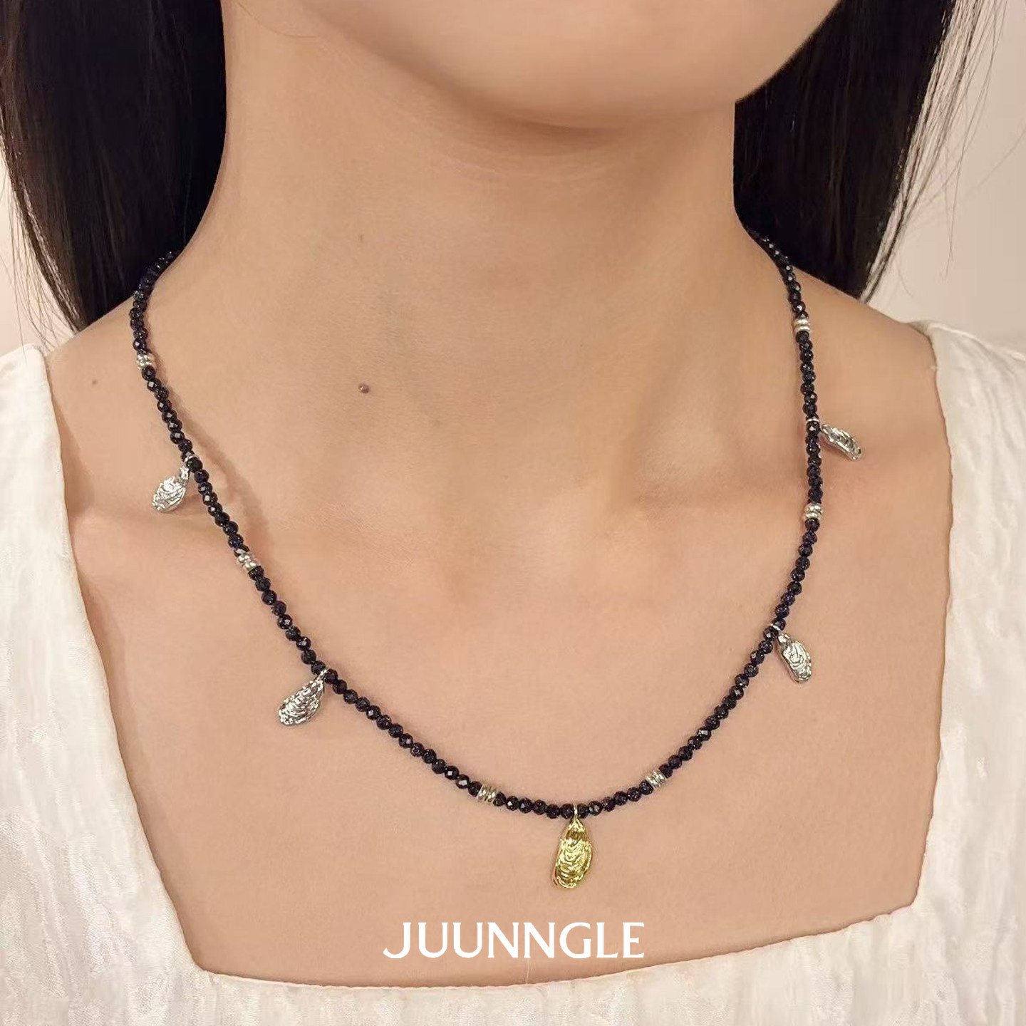 Dare买手店JUUNNGLE洲谷贻贝蓝砂项链串珠天然石黑色复古原创设计