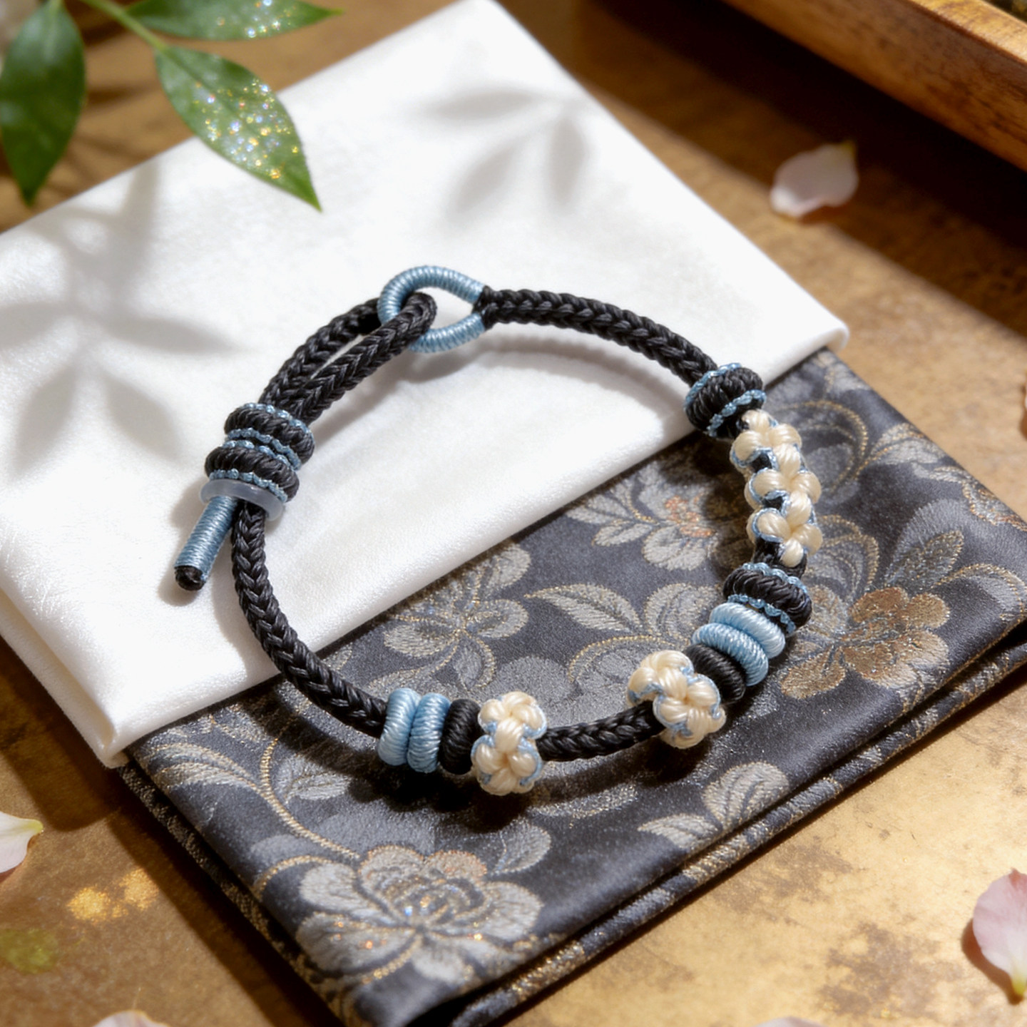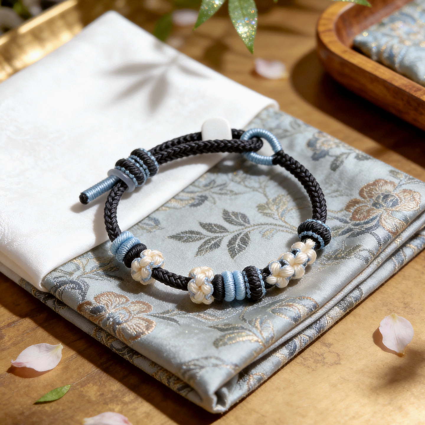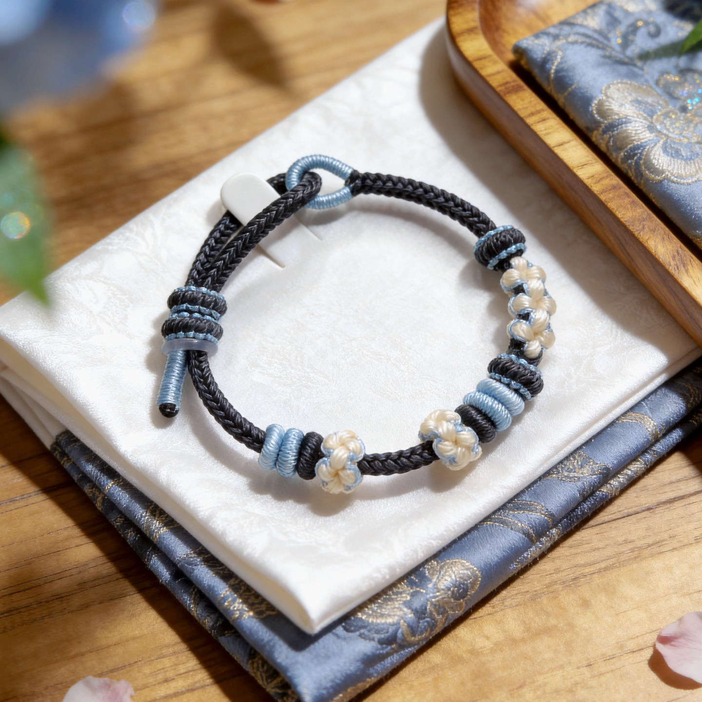 蓝色民族风手工编织绳桃花手绳可穿珠串黄金转运珠可调节编绳手链