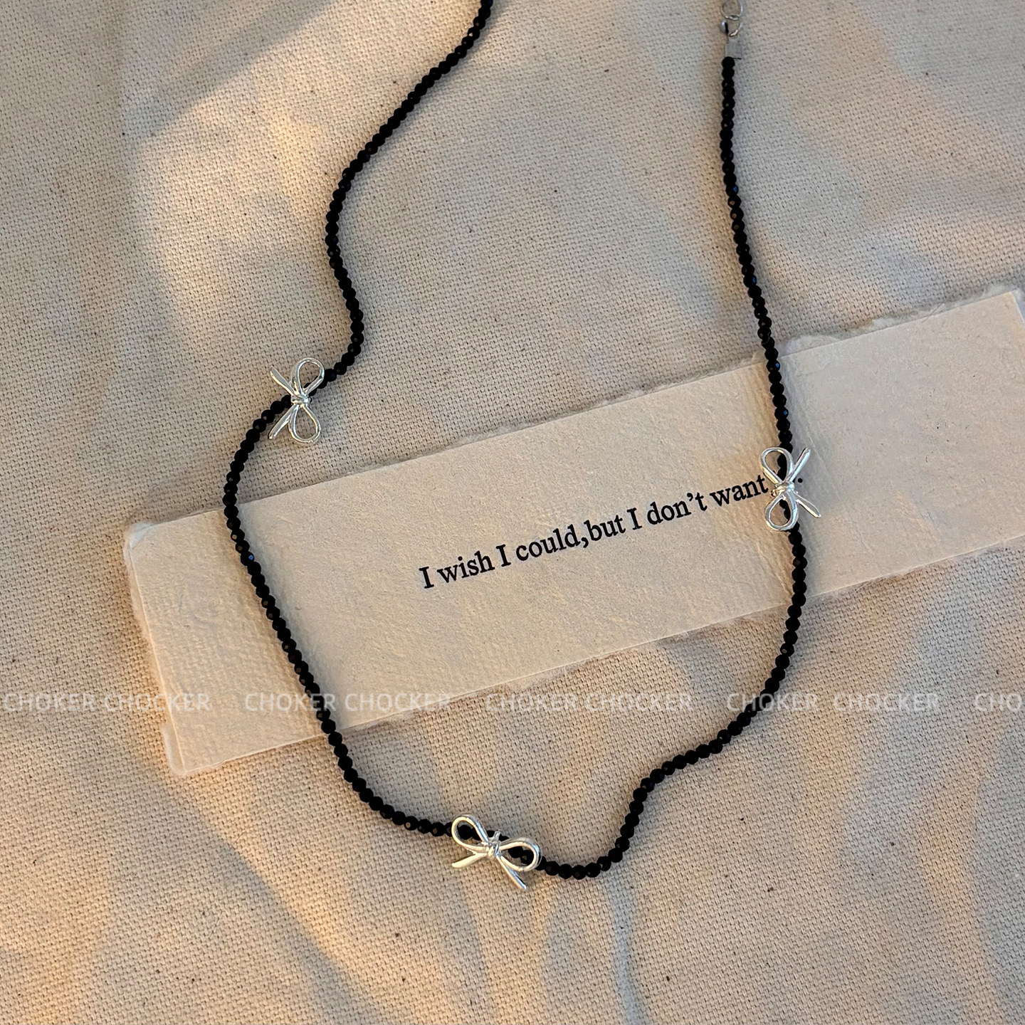 黑色水晶编织蝴蝶结choker颈链项圈锁骨项链女轻奢简约时尚高级感