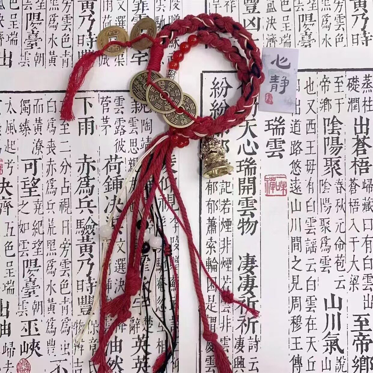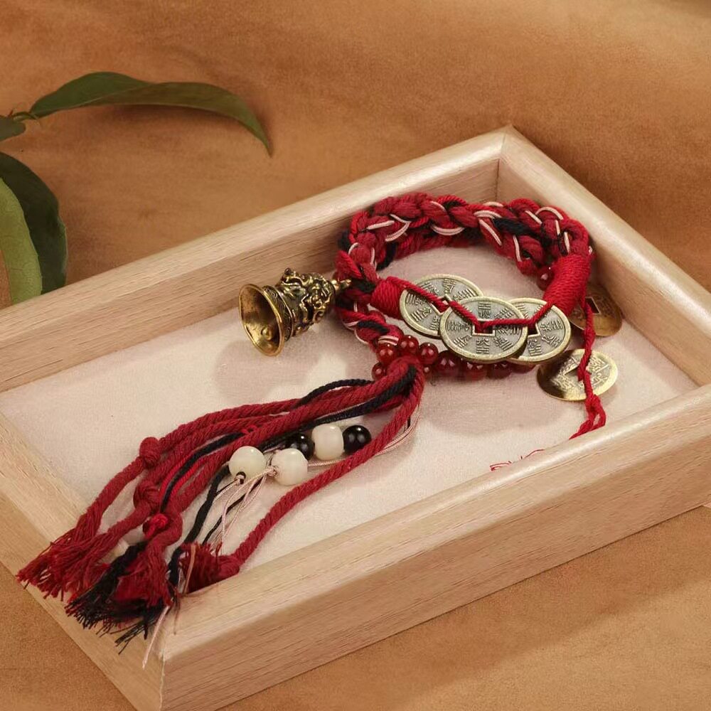 李火旺山鬼花钱手链新中式国风铃铛古风配饰红色国潮手工编织手绳