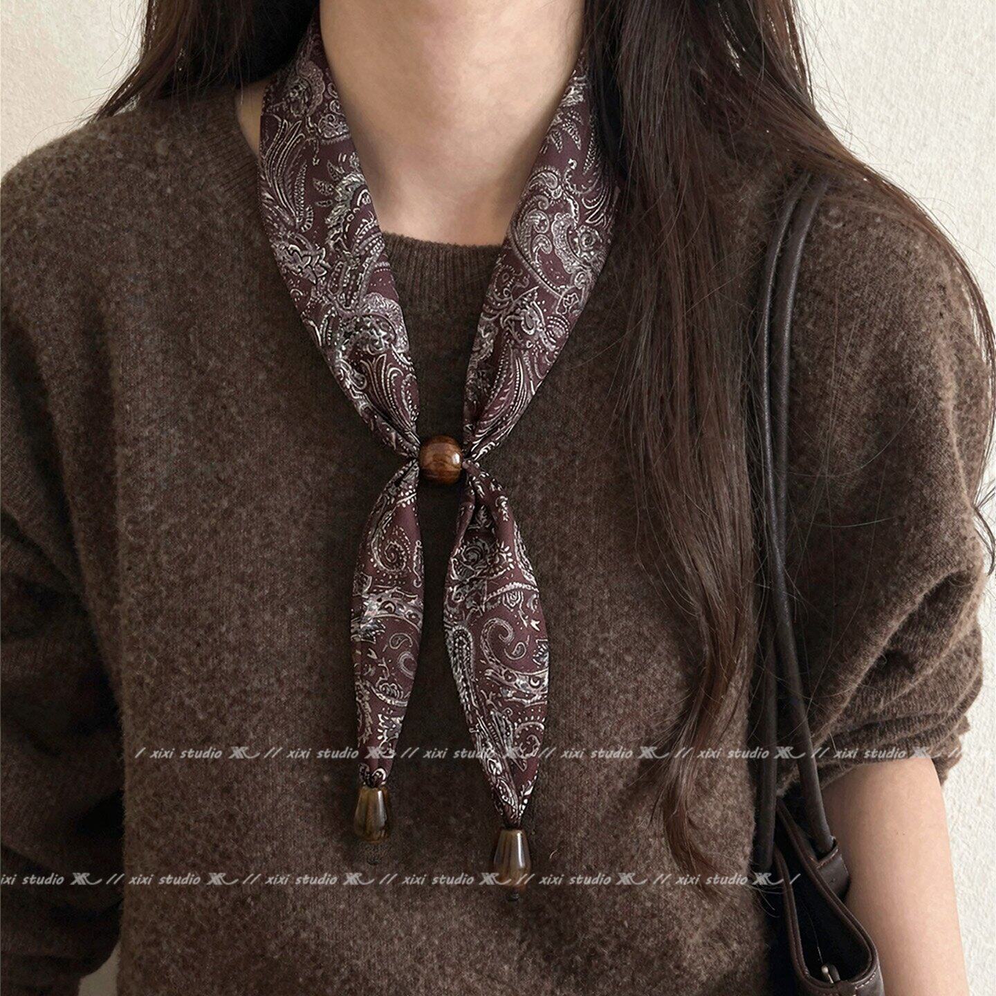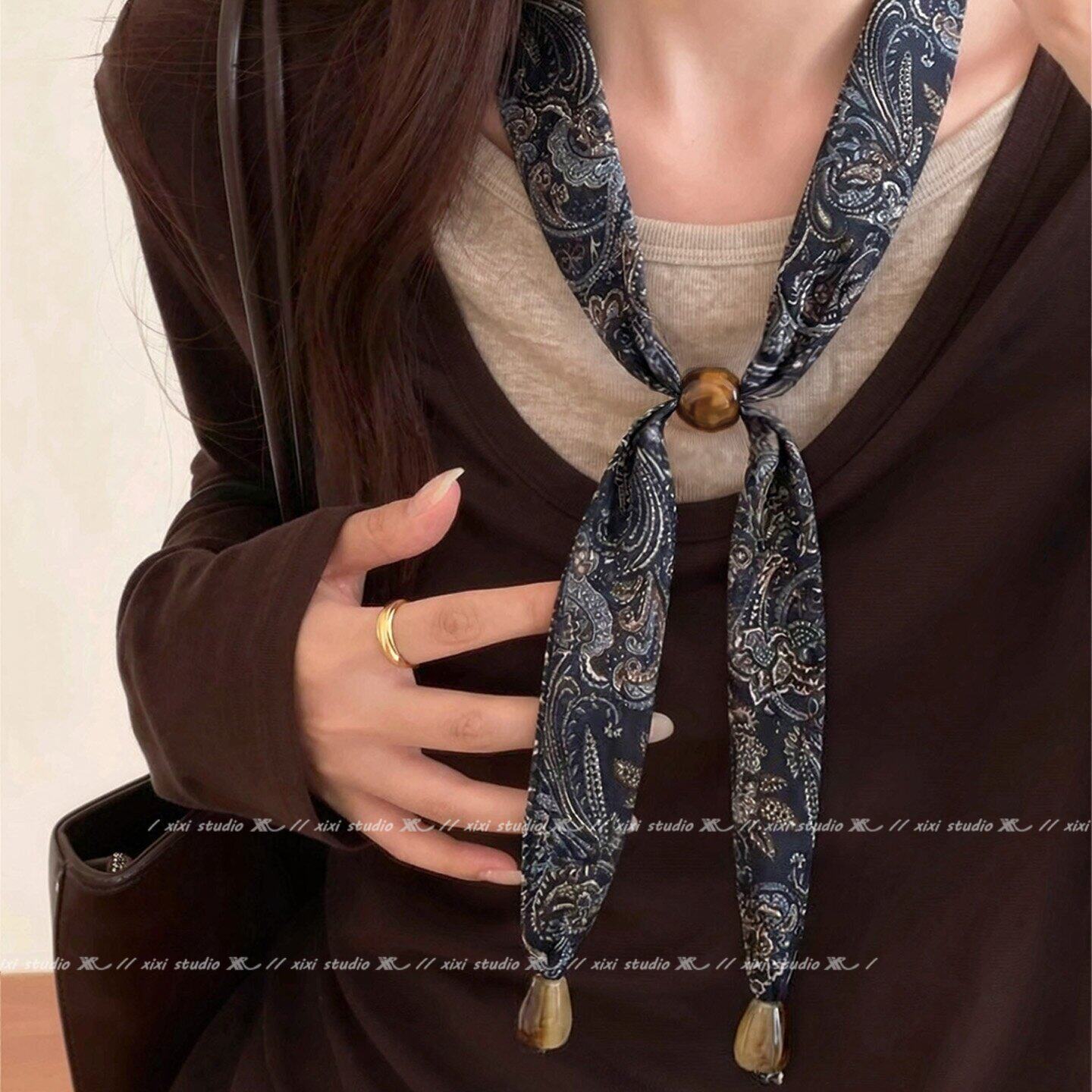 藏蓝色腰果花纹串珠丝巾项链老钱风休闲颈饰小众设计气质配饰新品