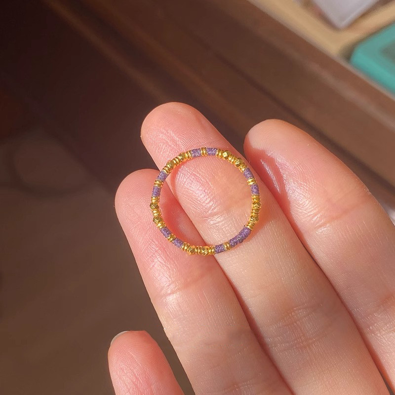 紫色编绳金珠戒指女小众设计轻奢高级感新中式食指戒小巧精致指环