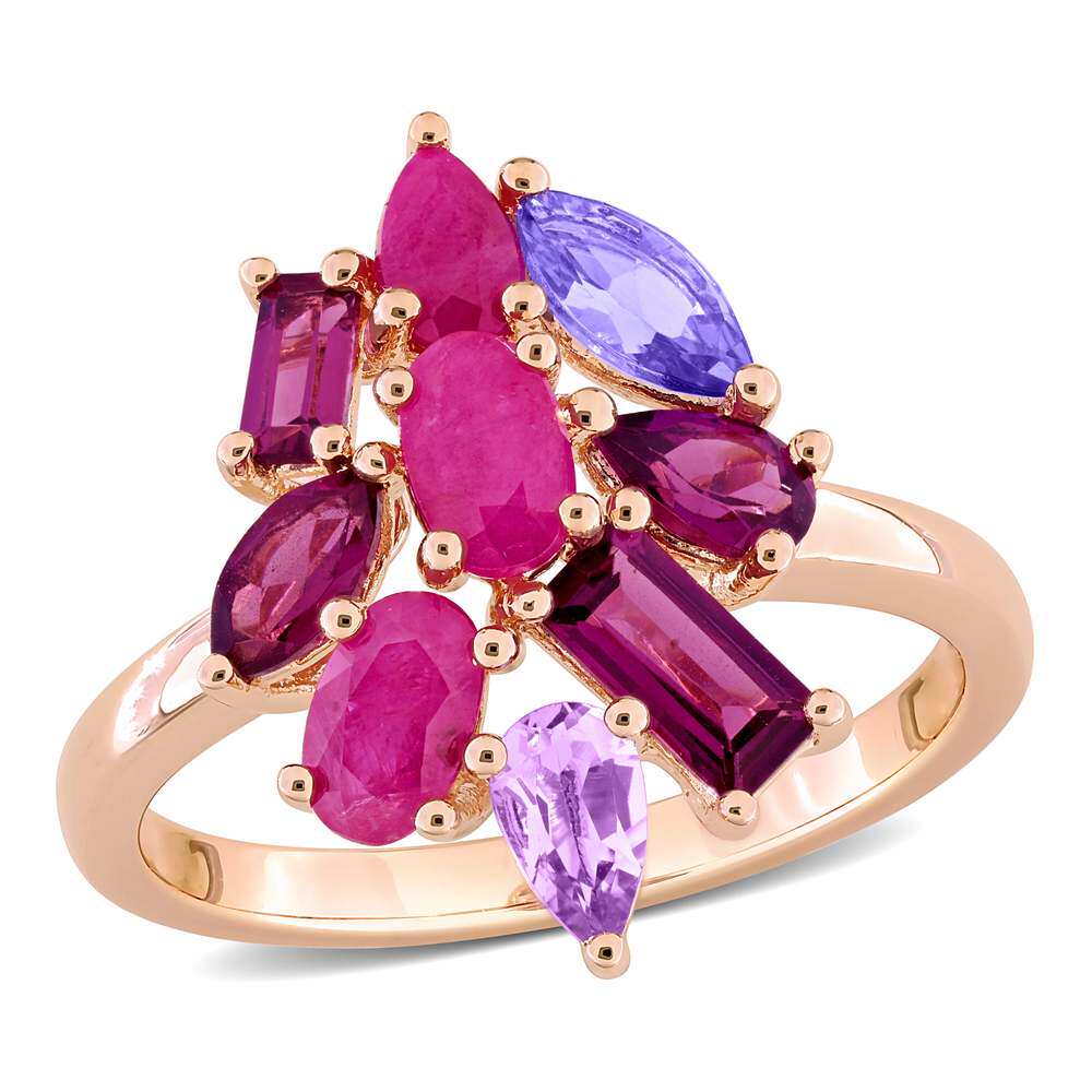 自营Mimi & Max Multi-Shape Gemstone Floral Ring Sterling Sil