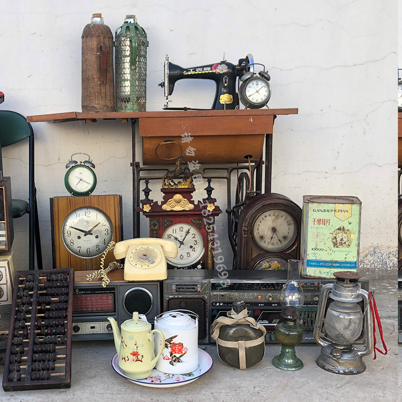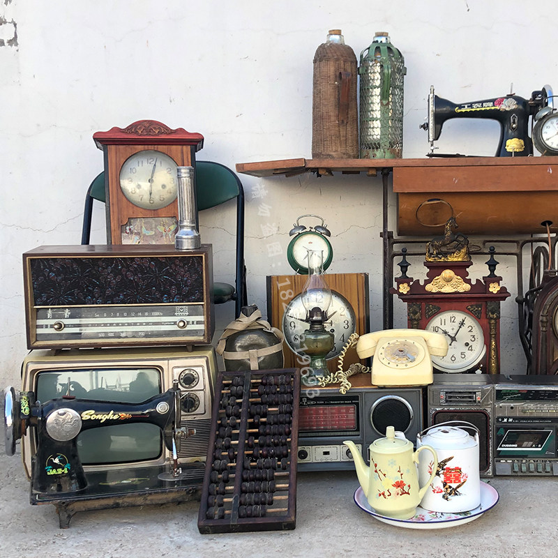 算盘民俗老物件缝纫机老煤油提灯老式收音机电视机老钟表暖瓶