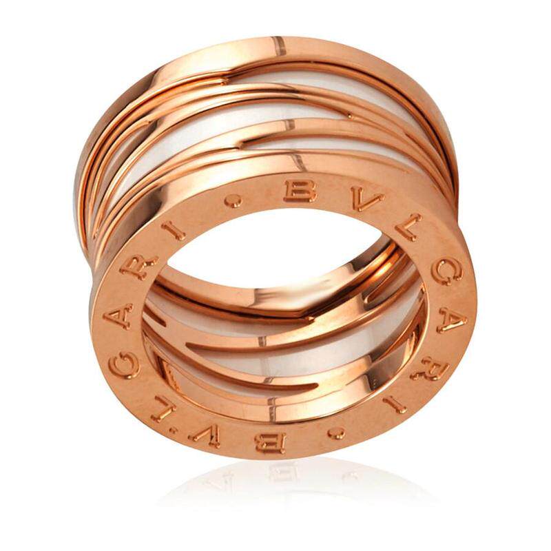 代购Bvlgari宝格丽女士戒指优雅简约时尚精致玫瑰金白色陶瓷