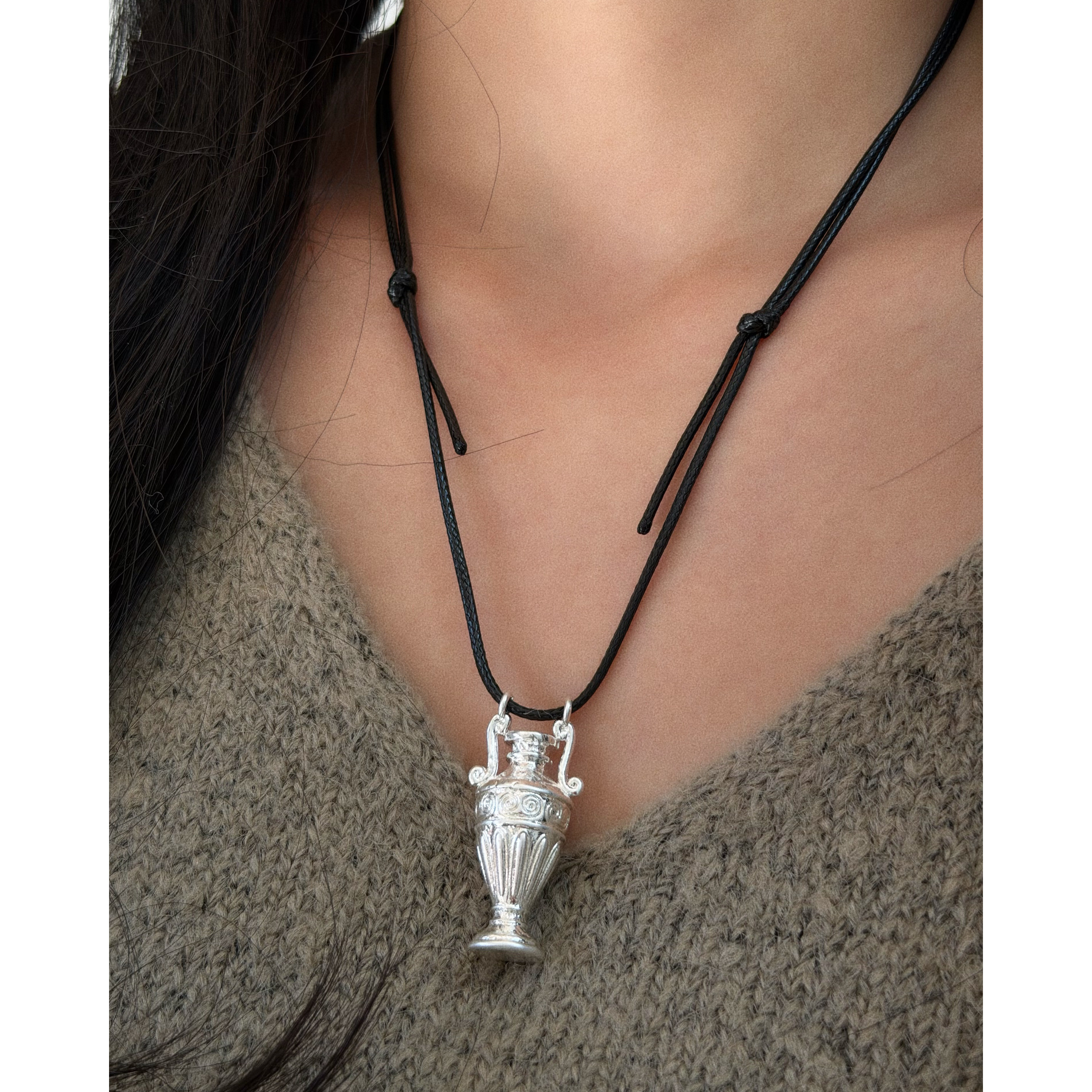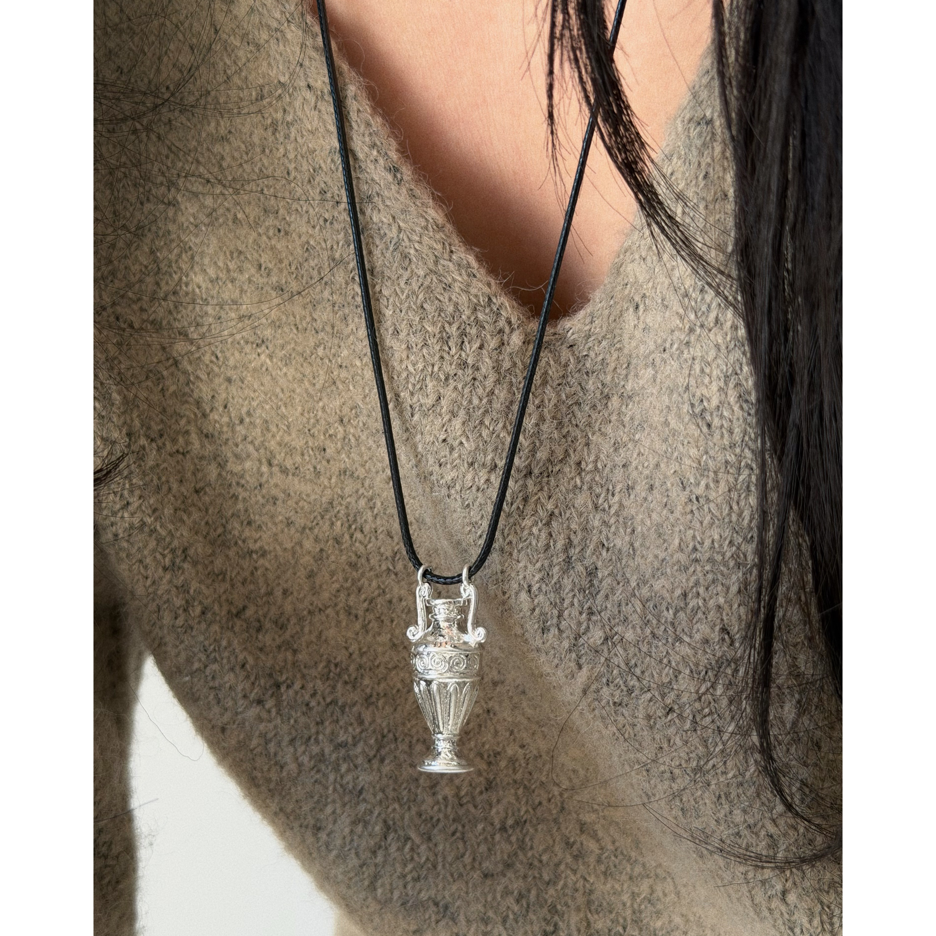 小众设计高级感银色花瓶图案搭配黑色皮蜡绳项链 个性时髦耳环女