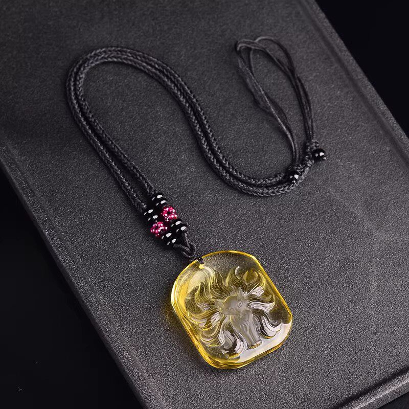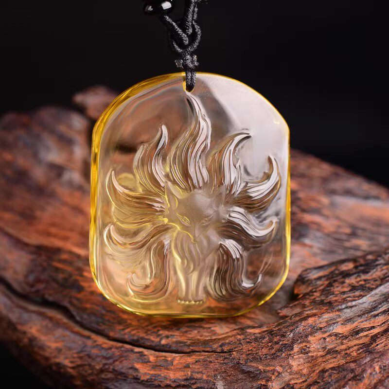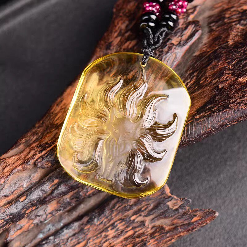 天然黄水晶九尾狐吊坠催缘黄色水晶桃花狐狸项链男女饰品礼物首饰