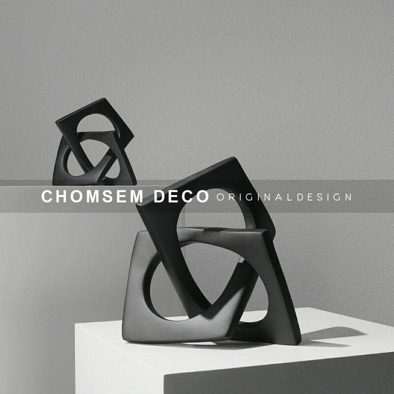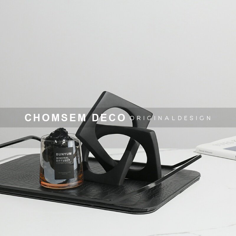简约现代黑色菱形树脂样板房间A摆件售楼处家居书房办公室软装饰