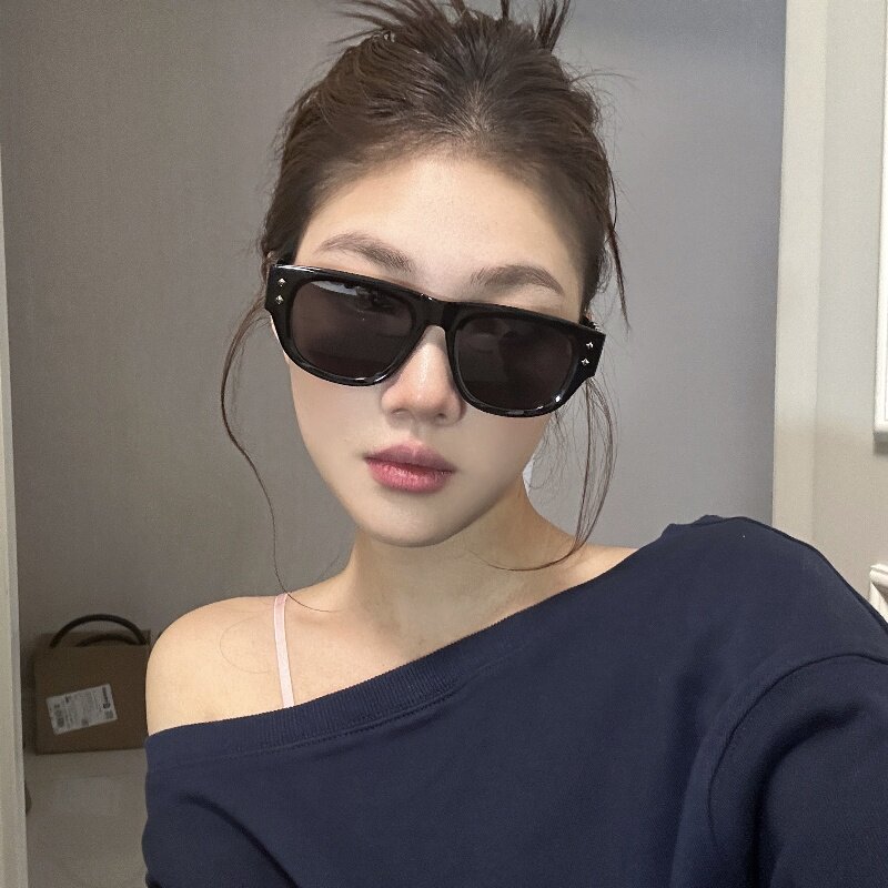 美式辣妹风高级感韩版防晒太阳眼镜2026网红女黑色链条腿大框墨镜