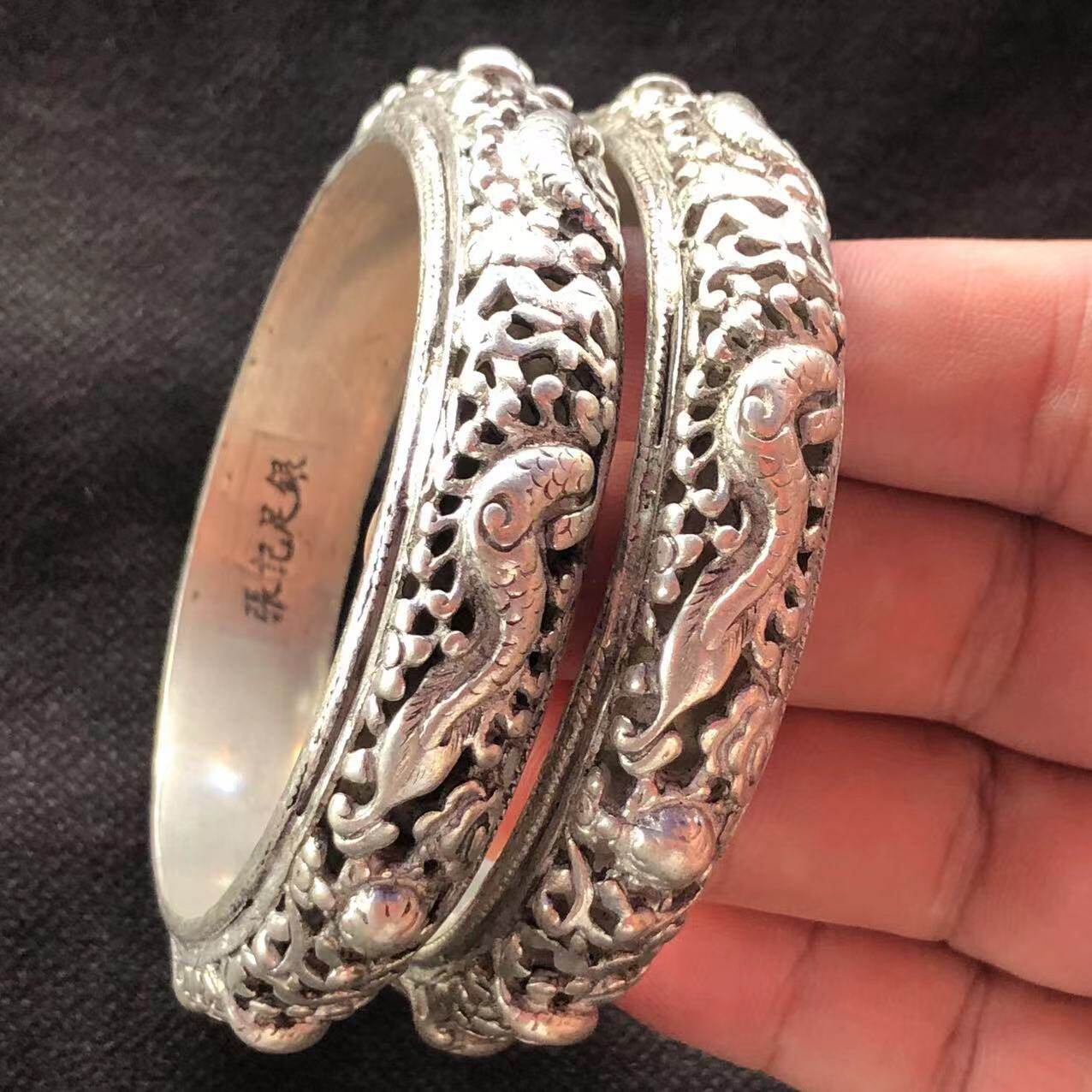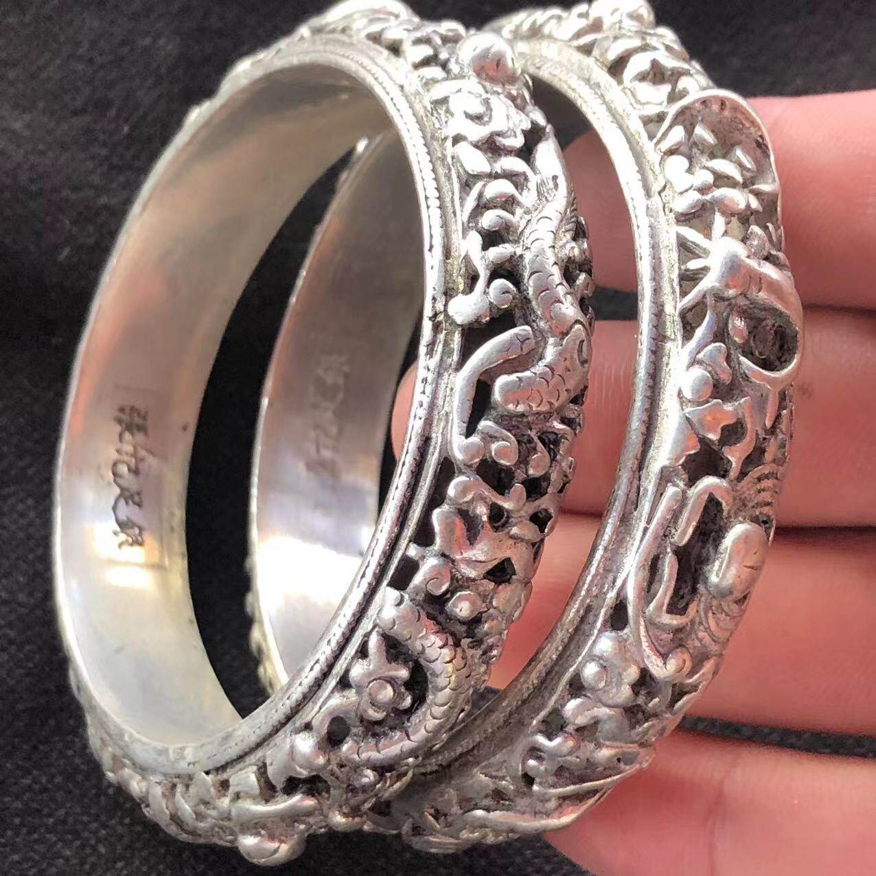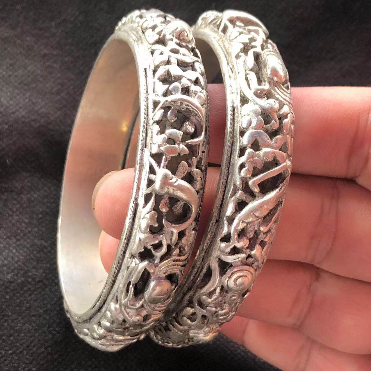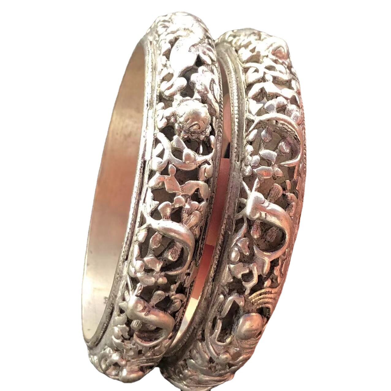 批发复古白铜镀银镂空手镯 做旧黑色藏银手环苗银饰品手饰品