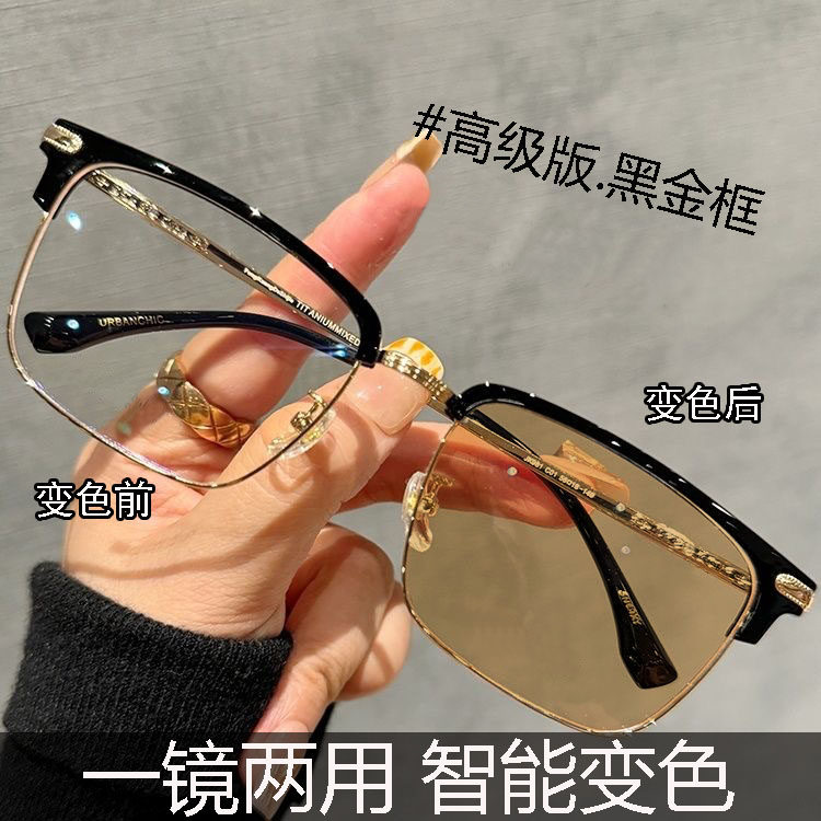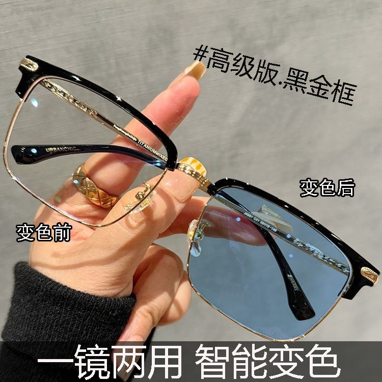 变色眼镜男超轻黑色大脸半框眼镜男近视配有度数斯文痞帅太阳镜潮
