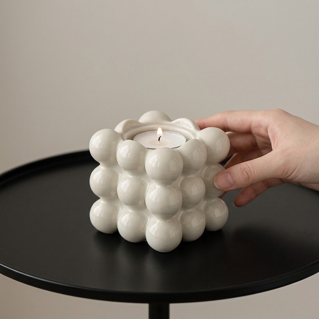 创意手工陶瓷葡萄造型烛台家居装饰摆件白色创意家居装饰