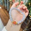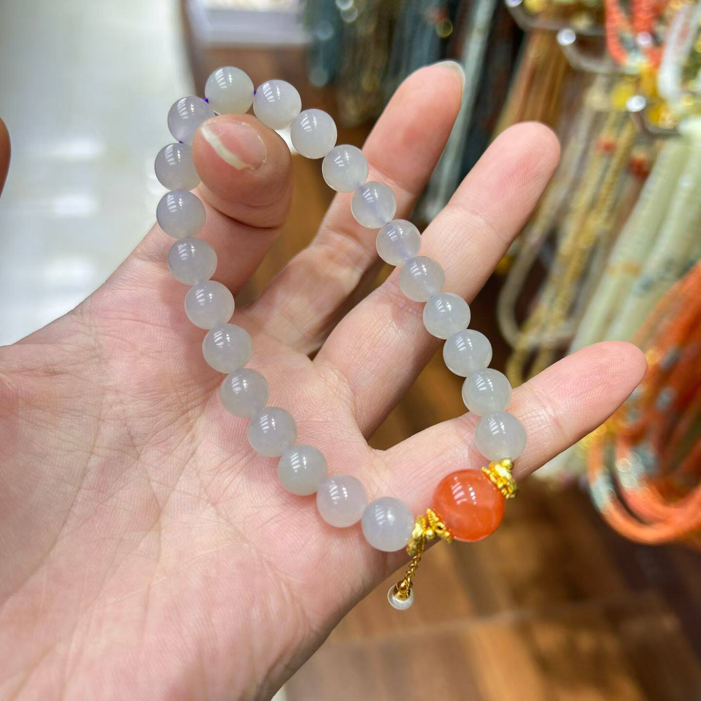 和田玉冰烟紫手串配南红珍珠女轻奢小众百搭橙色吊坠圆珠串珠手饰