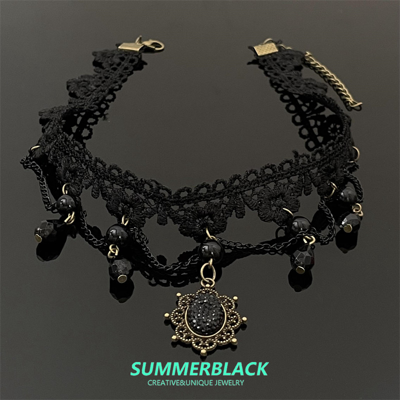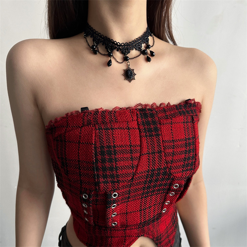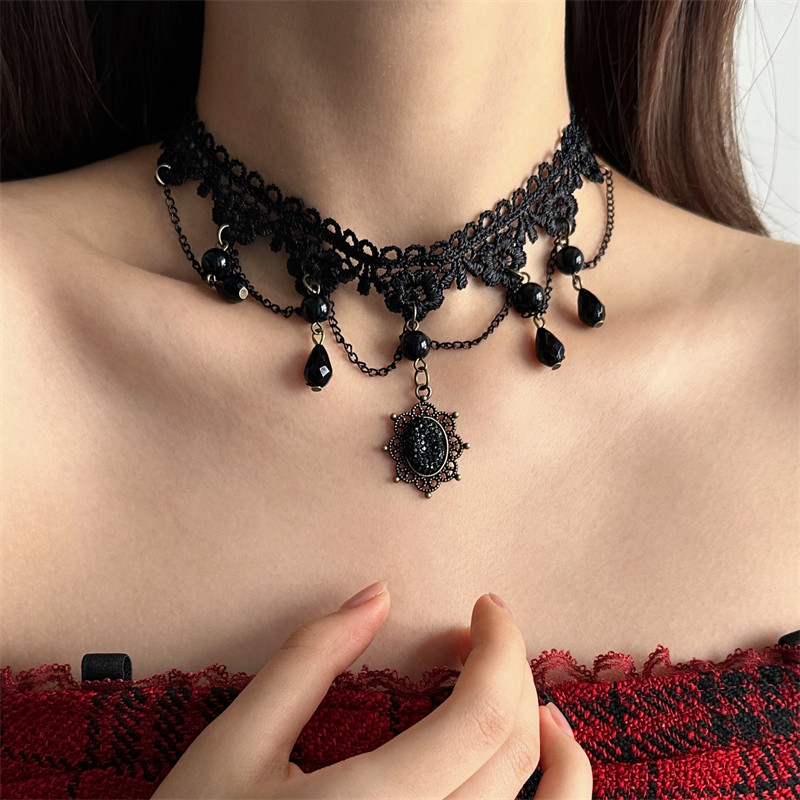 暗黑哥特风黑色蕾丝流苏choker项链女颈链脖子配饰颈带高级感饰品