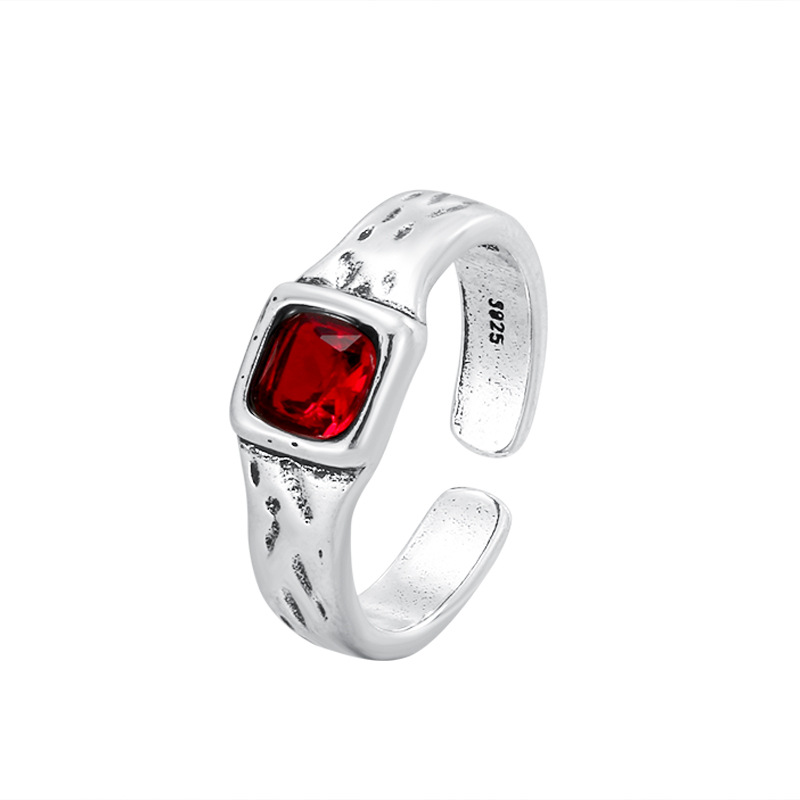 韩版小众设计感复古红色戒指韩版简约博主款个性指环