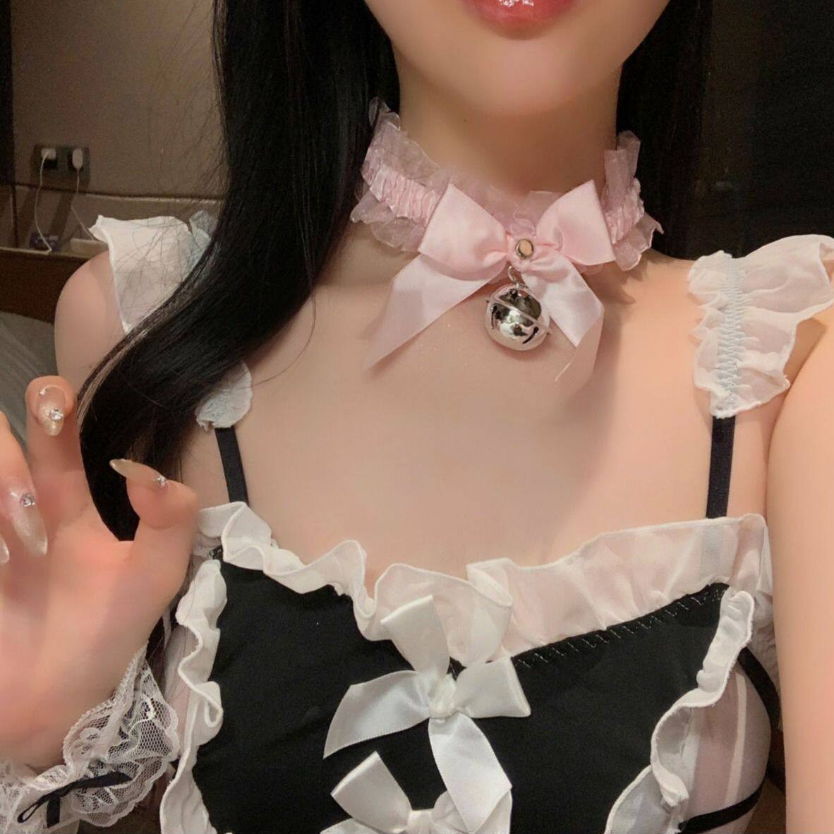 白色黑色粉色铃铛可爱蝴蝶结性感蕾丝项链腿链配饰腿环袜辣妹绑带