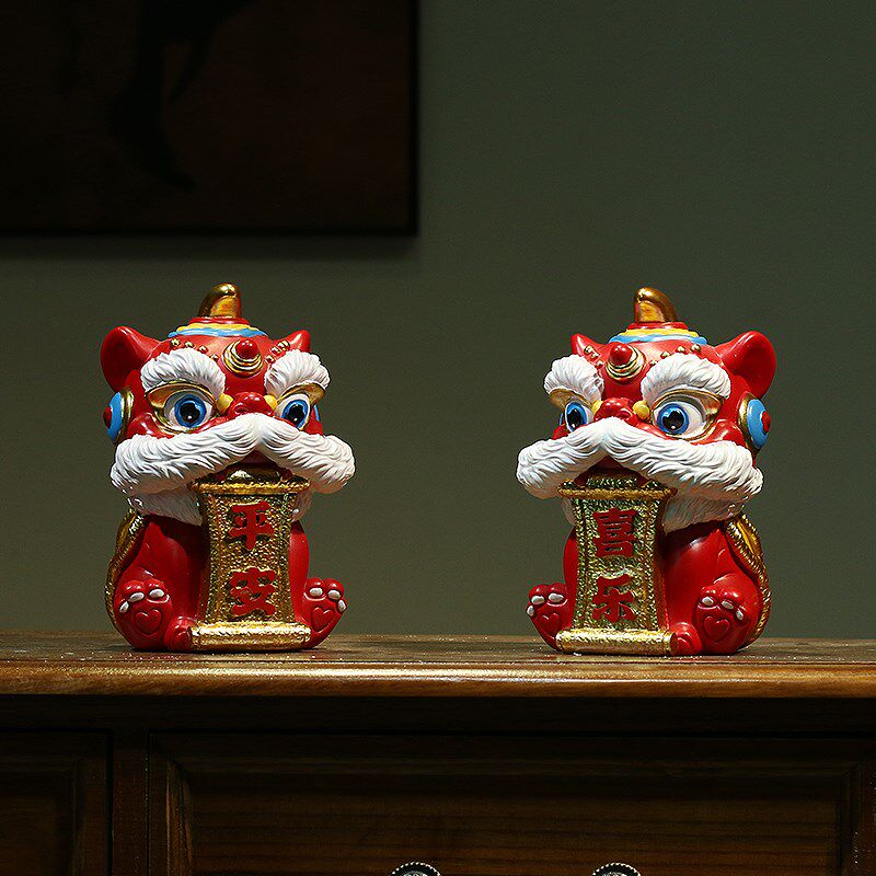 国潮文创醒狮树脂创意可爱迷你小狮子摆件平安喜乐潮玩艺术品玩具