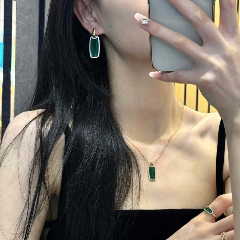 欧美纯银湖蓝色幸运石手链孔雀石方形项链湖水蓝戒指耳环锁骨链