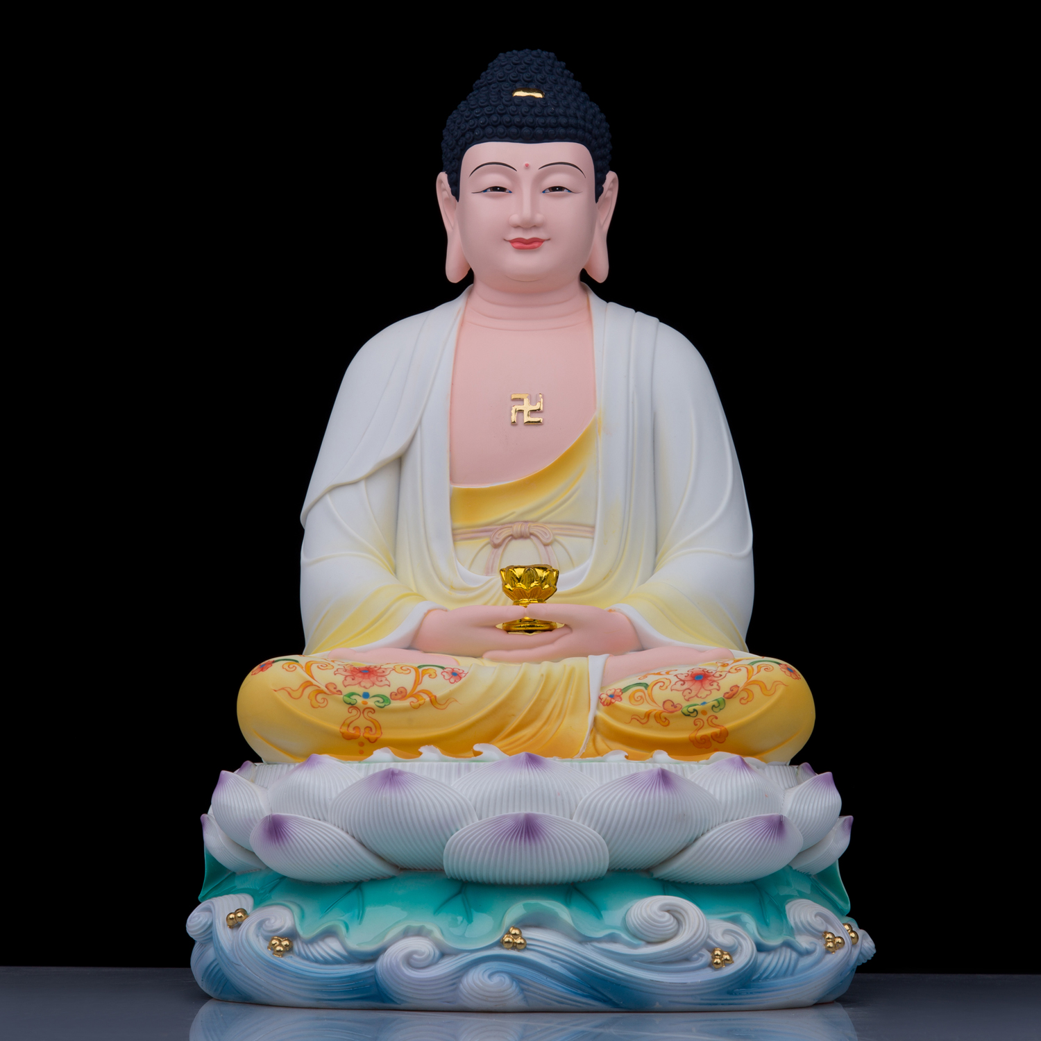 了凡居娑婆三圣观音菩萨佛像家用供奉释迦佛坐莲地藏王弥勒佛摆件