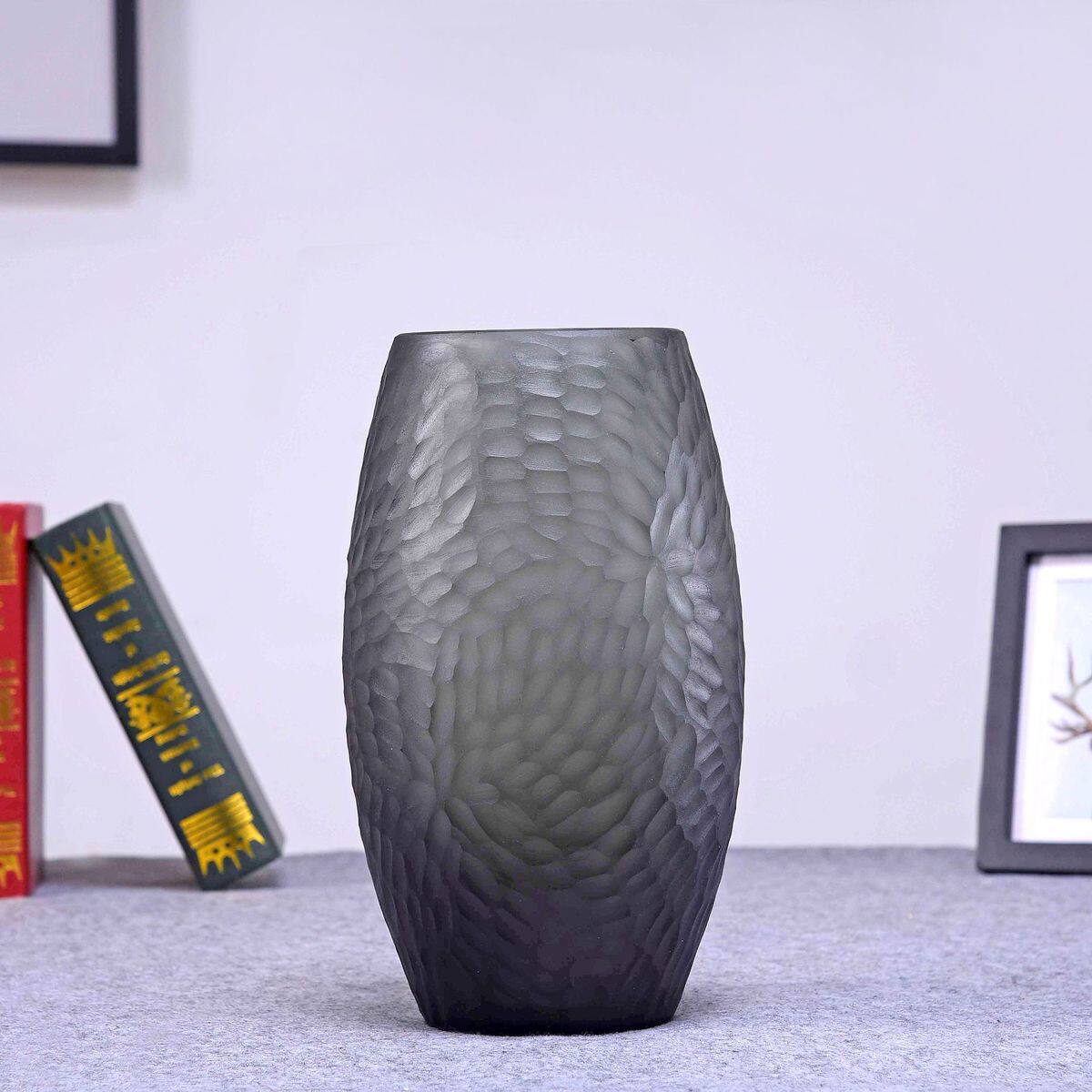 19烟灰色新款插花玻璃花瓶公司前台富贵竹插花器现代客厅装饰品