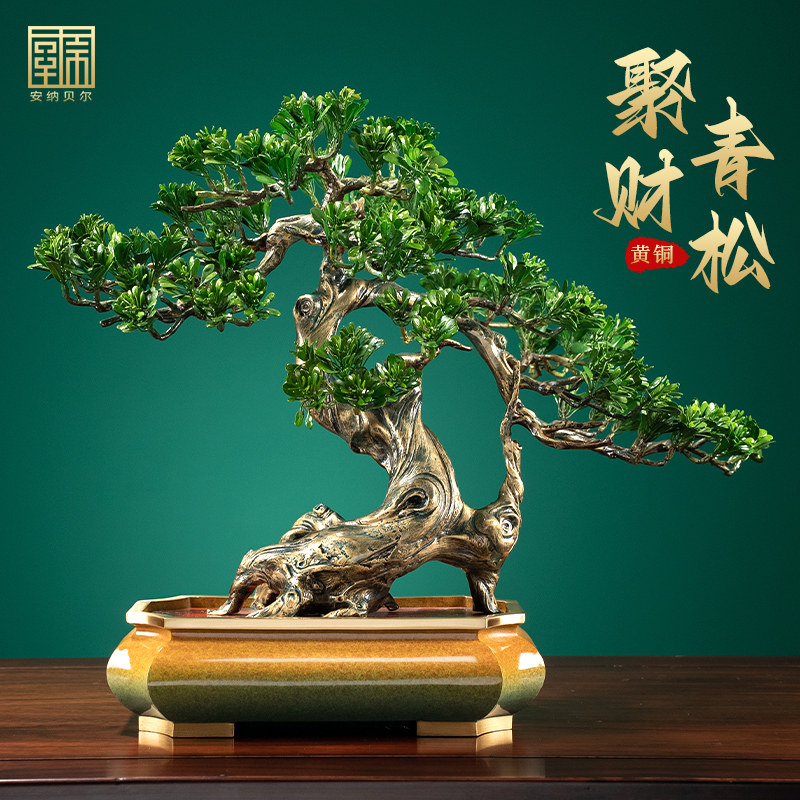 迎客松黄铜摆件客厅高档办公室入户玄关装饰公司搬迁开业乔迁礼物