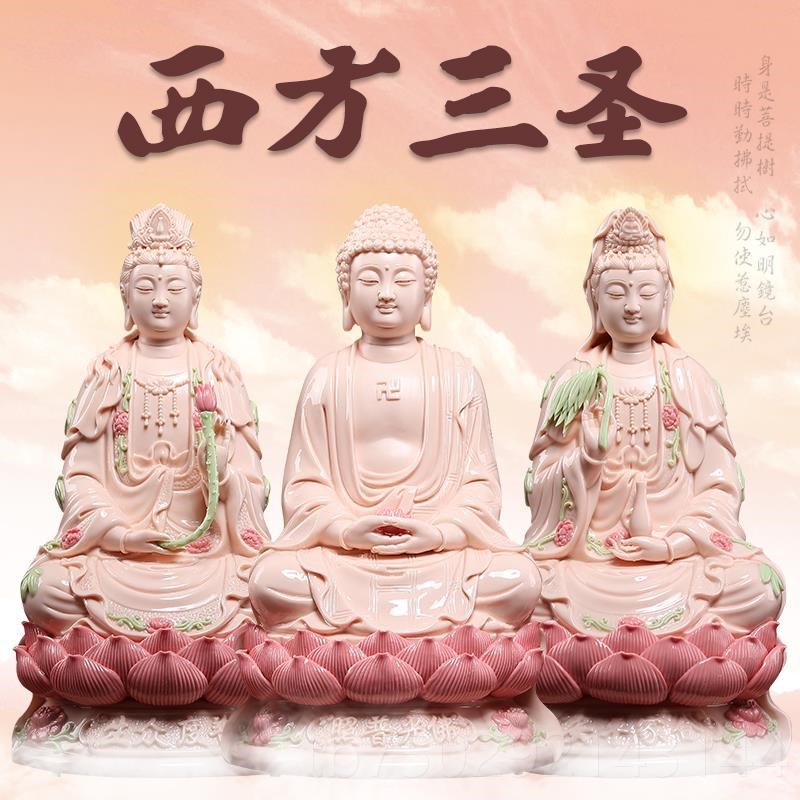 高档戴玉堂陶瓷摆件《1寸合v家平安西方像三圣神英像玉红》佛客厅