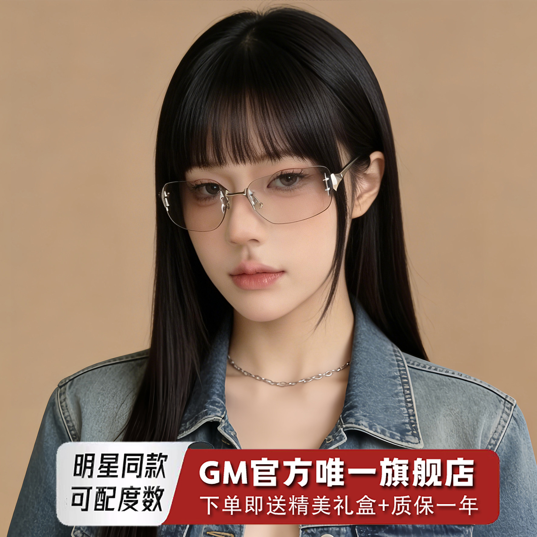 GM墨镜无框浅茶太阳眼镜女士jennie同款千禧风高级感防紫外线WKF