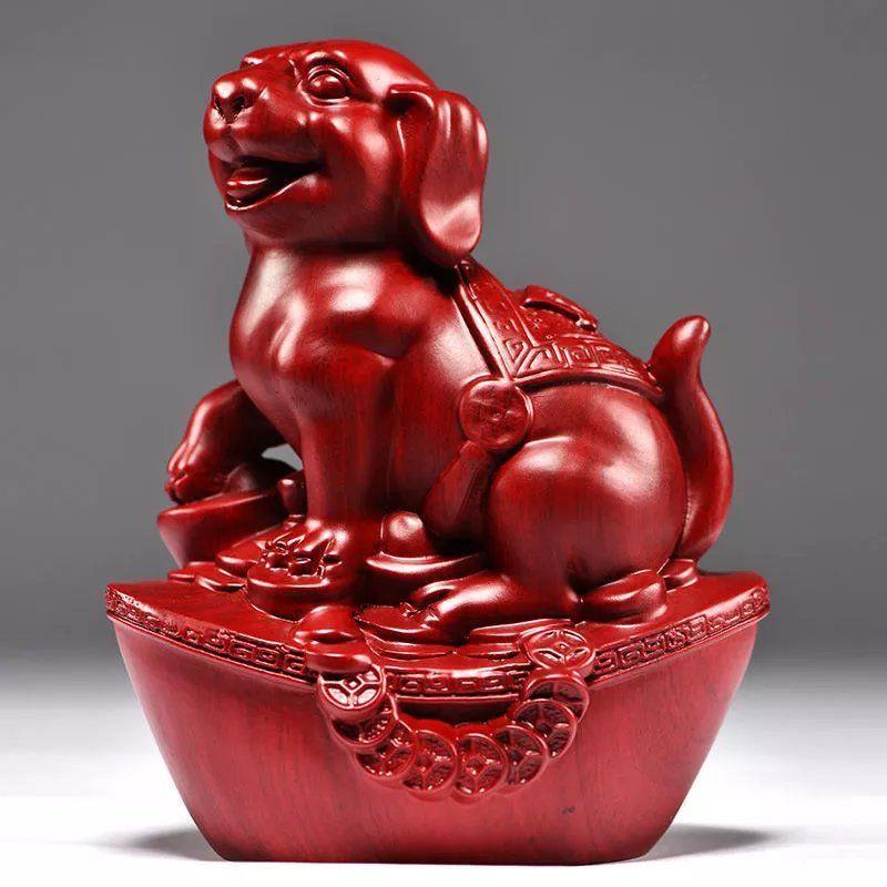 花梨木雕狗摆件十二生肖狗摆设家居客厅电视柜办公装饰红木工艺品