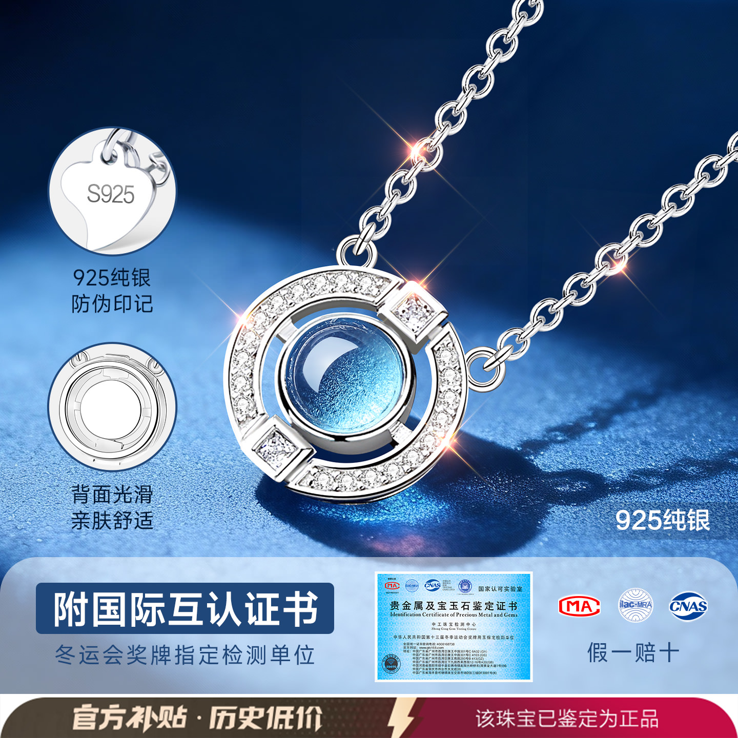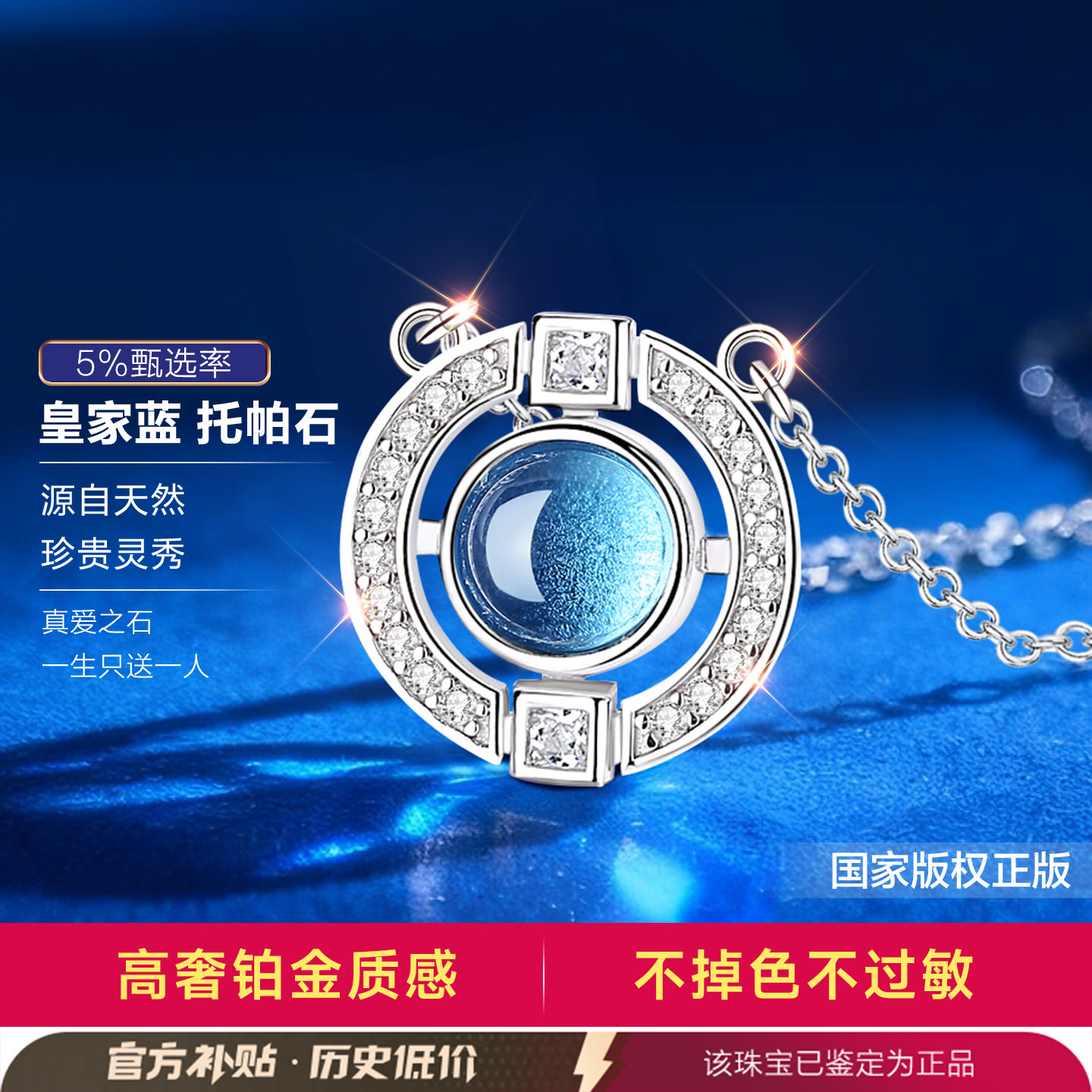 爱的记忆银项链女款2025新款女士女天然托帕石蓝色宝石吊坠高级感