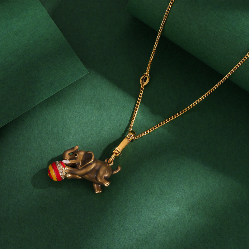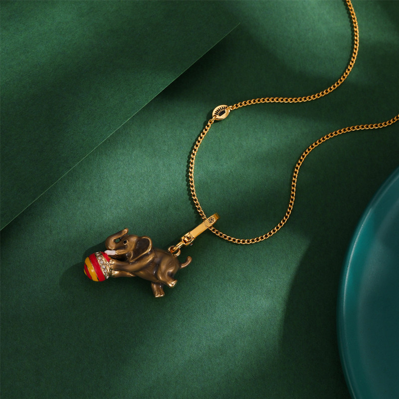 欧美时尚珐琅釉马戏团灰色大象镶钻彩色圆球吊坠项链卡通动物挂坠