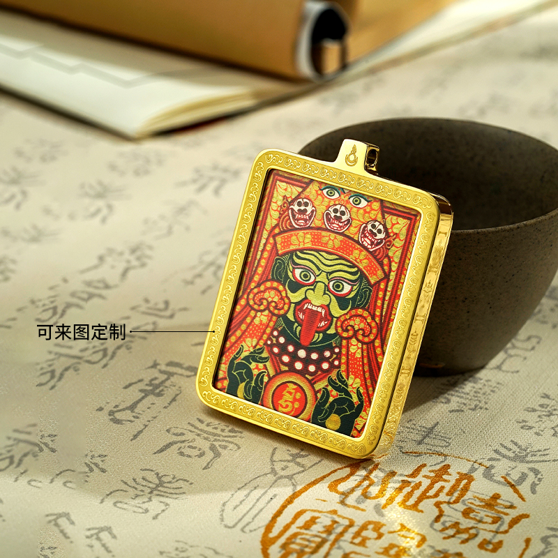 心明唐卡画盒八大本命扎基拉姆图案可定制唐卡嘎乌盒吊坠配件