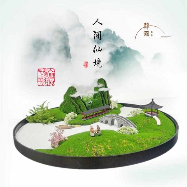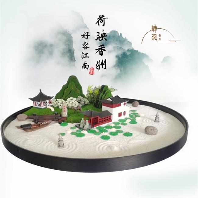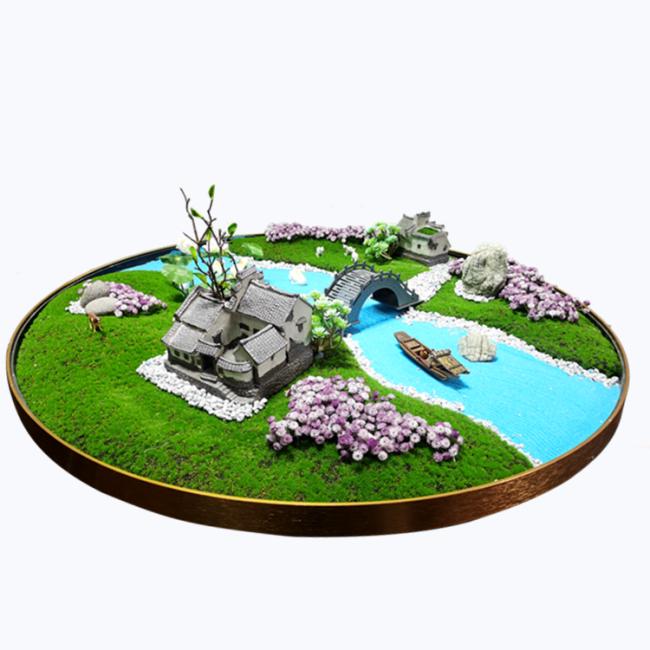 新中式禅意圆桌宴会摆台 酒店时尚旋转桌面景观桌花 包房包厢摆景