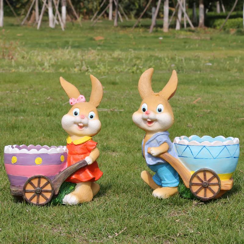户外花园卡通兔子多肉动物花盆雕塑庭院园林创意树脂装饰工艺摆件