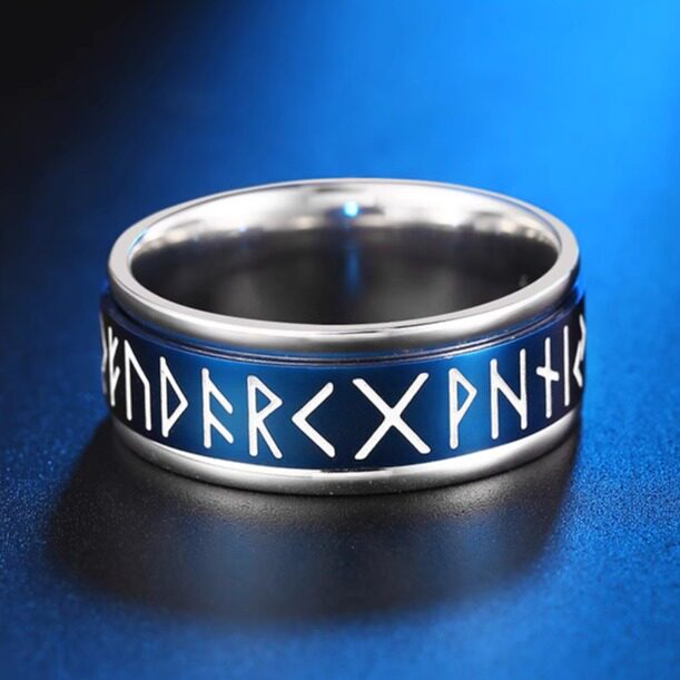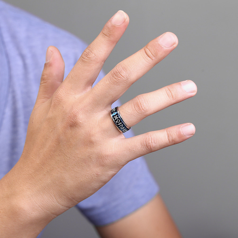 时尚钛钢戒指 可旋转北欧风钛钢维京文字图腾夜光发光钛钢戒指
