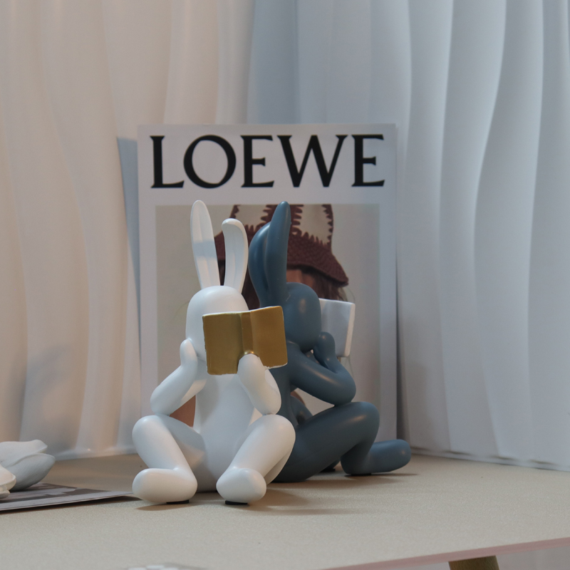 现代创意看书兔子可爱摆件公仔饰品样板间客厅儿童房卡通雕塑软装