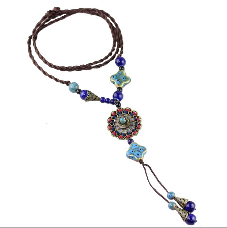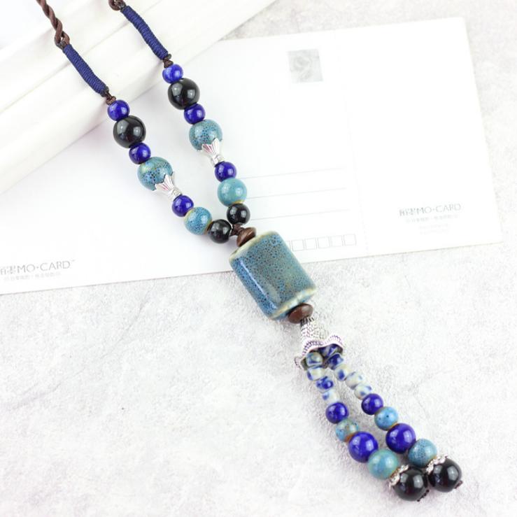 清仓处理!日韩百搭陶瓷毛衣链秋冬衣饰品长款项链复古民族风简约