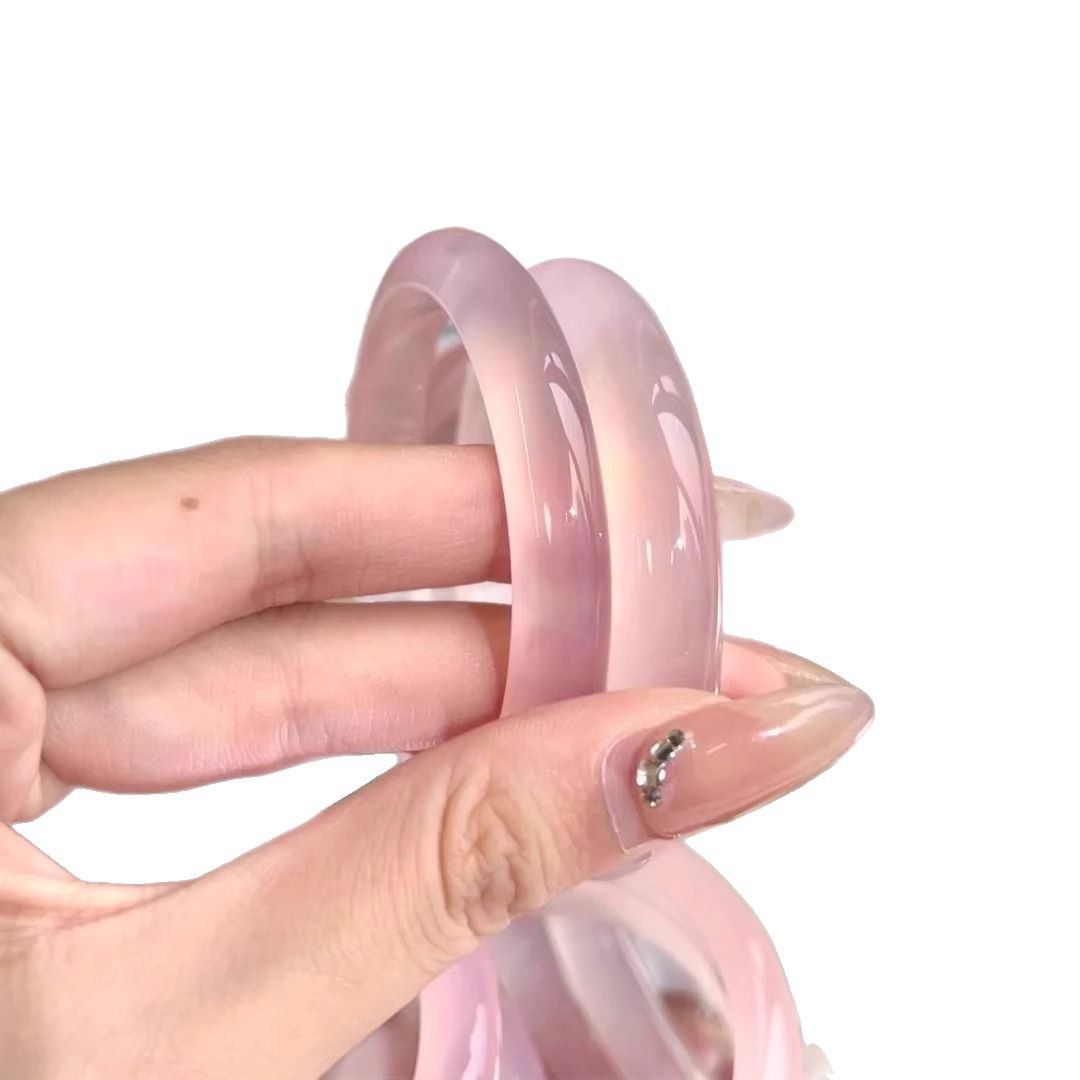 猫眼石手镯天然冰种玉髓手镯女款冰透高冰玉石平安镯粉色水晶镯子