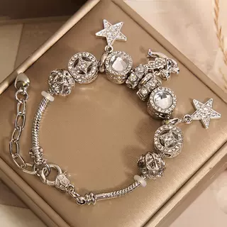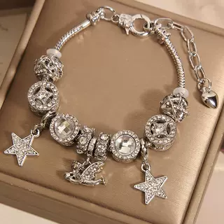 ins小众轻奢复古潘家风格手链女款白色琉璃珠五角星天使吊坠手链