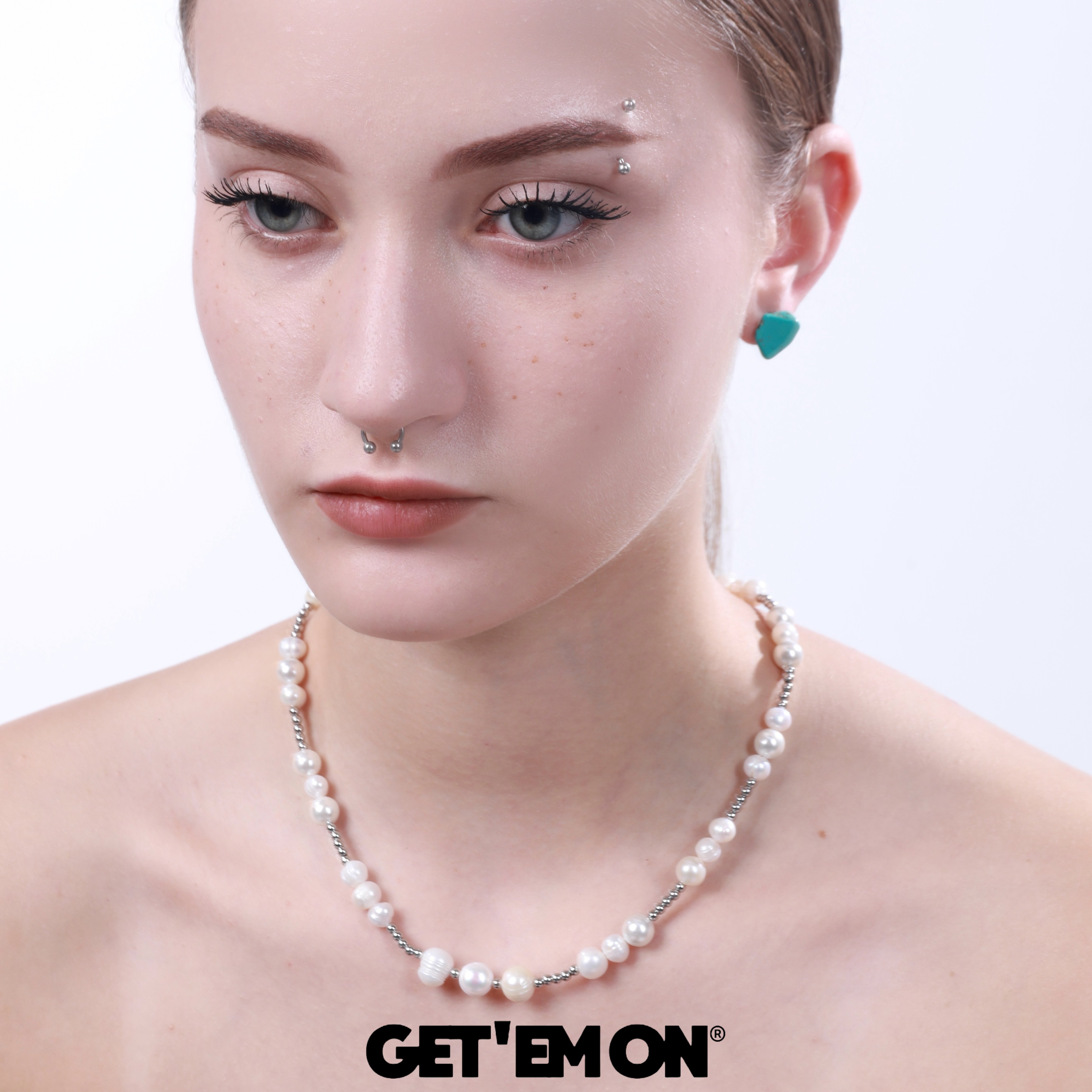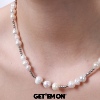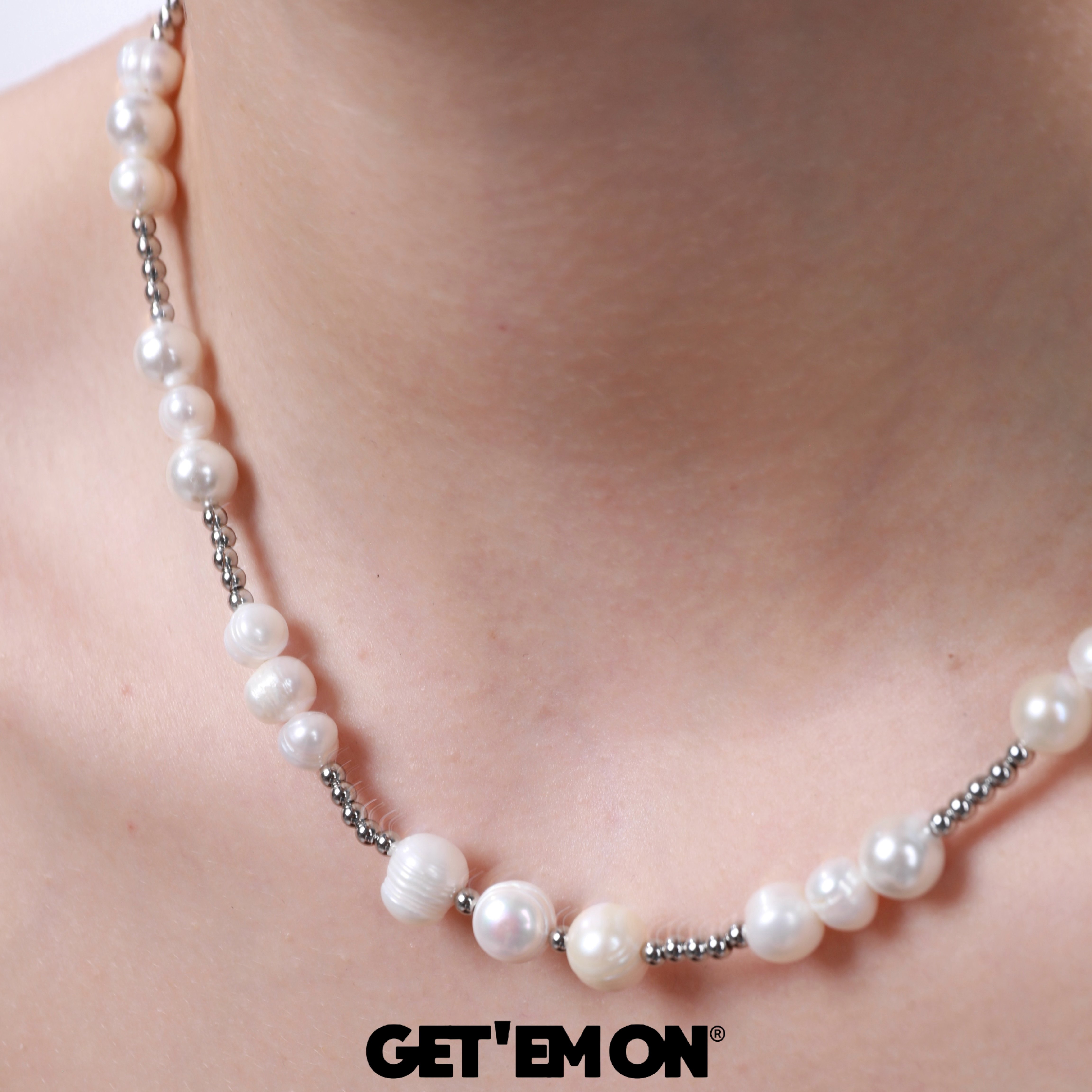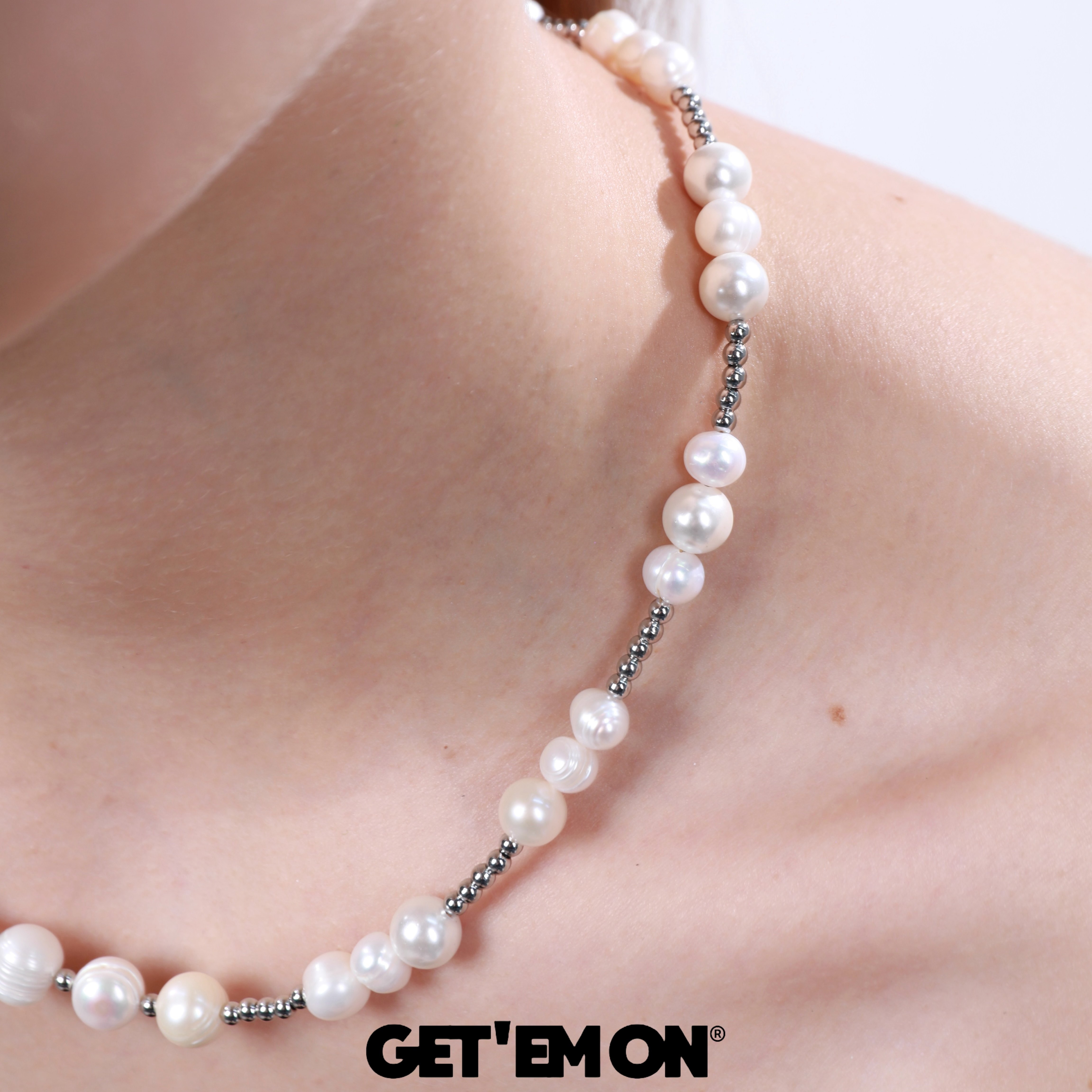 GetEmON原创高级感叠戴小众天然珍珠钛钢拼接男女串珠锁骨项链
