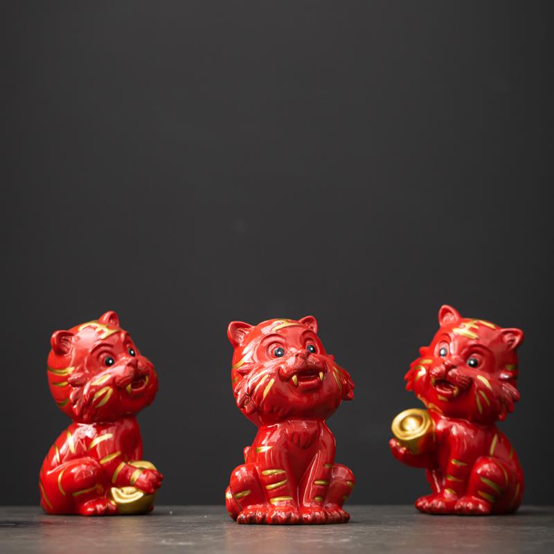 小萌虎红色陶瓷招财小老虎摆件工艺品生肖虎家居客厅办公桌装饰品