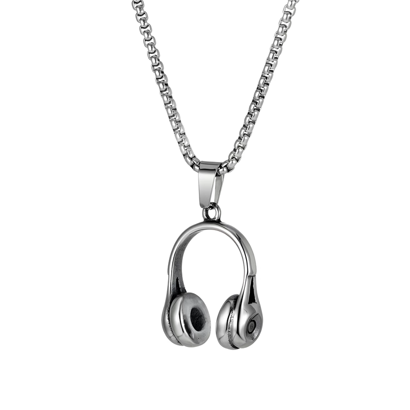耳机造型钛钢项链时尚简约音乐耳机吊坠男士耳麦复古潮牌百搭项链