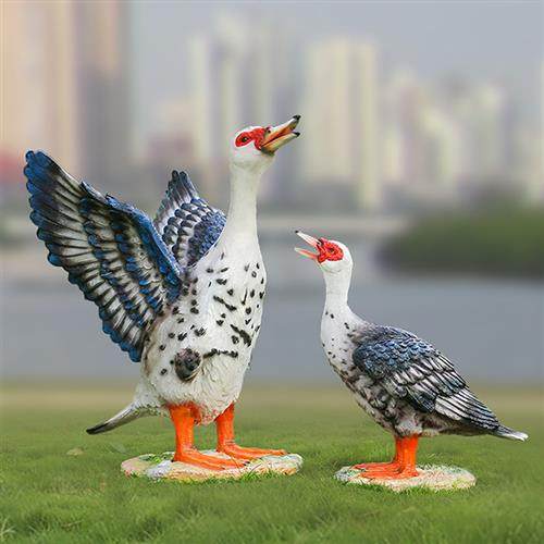 玻璃钢彷真鸭子雕塑户外公园装饰品绿头鸭番鸭白鸭摆件家禽大模型