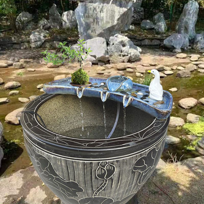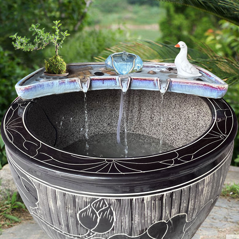 流水摆件循环水系统古法养鱼缸过滤造景搭配石槽瓦缸水池庭院配件