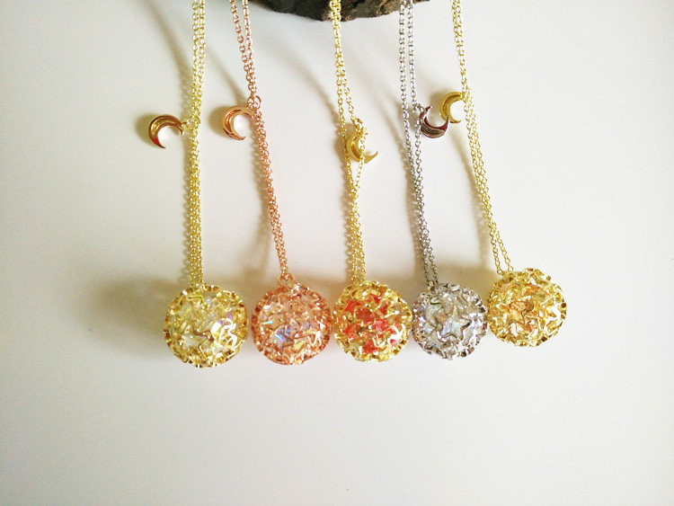 新品气质级感天然贝壳椭圆吊坠电镀短款锁骨链六芒星项链天鹅叶子
