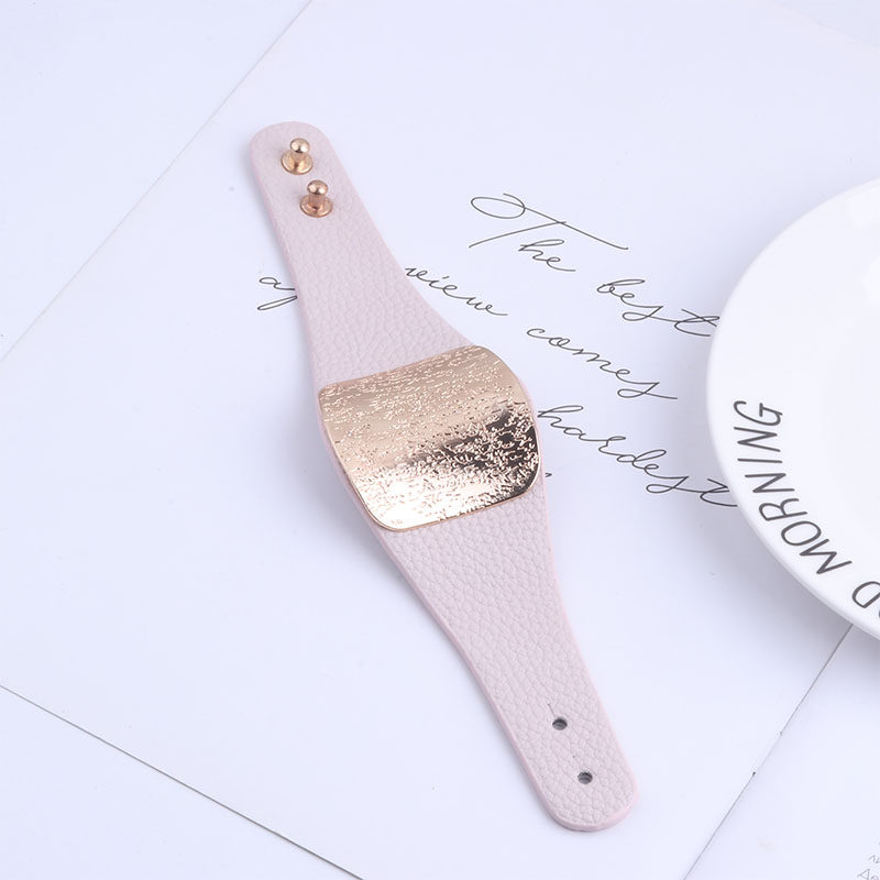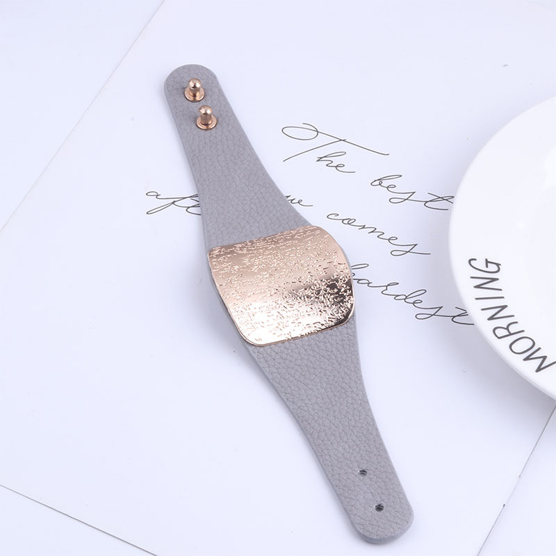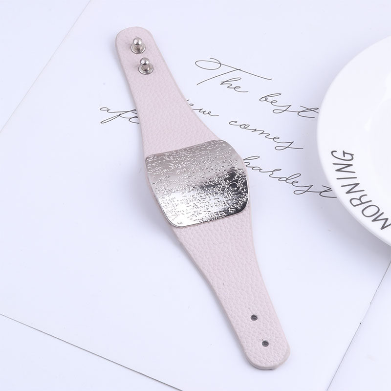韩版新款时尚帅气男女宽边PU皮革金属装饰手环女个性手镯手饰品潮