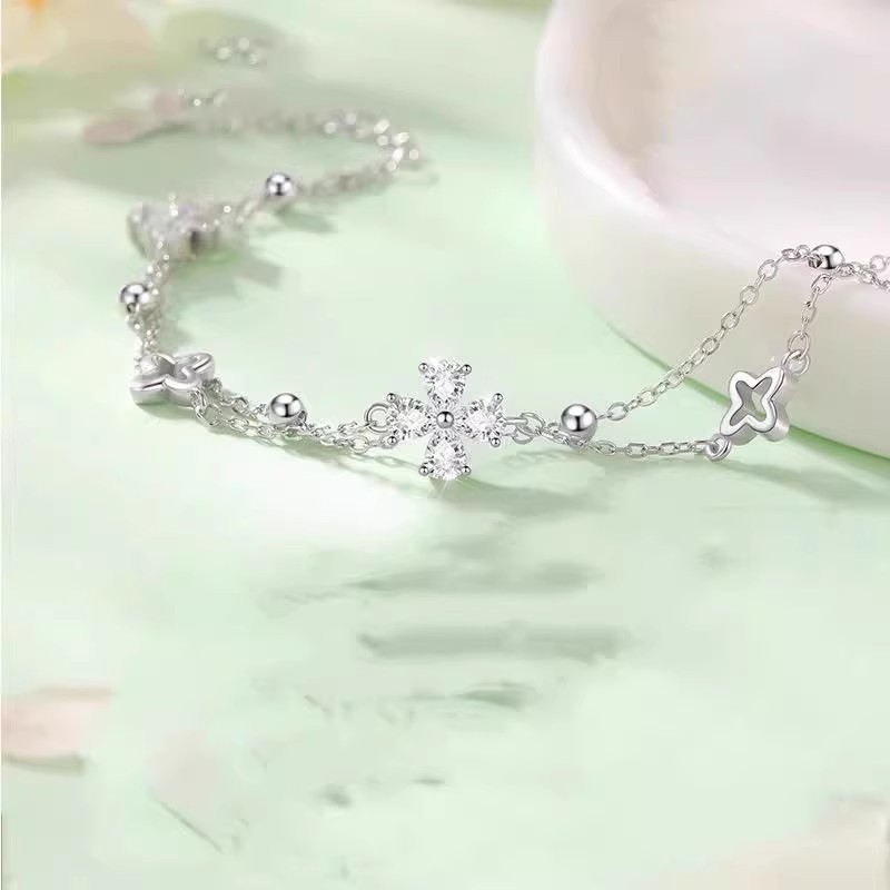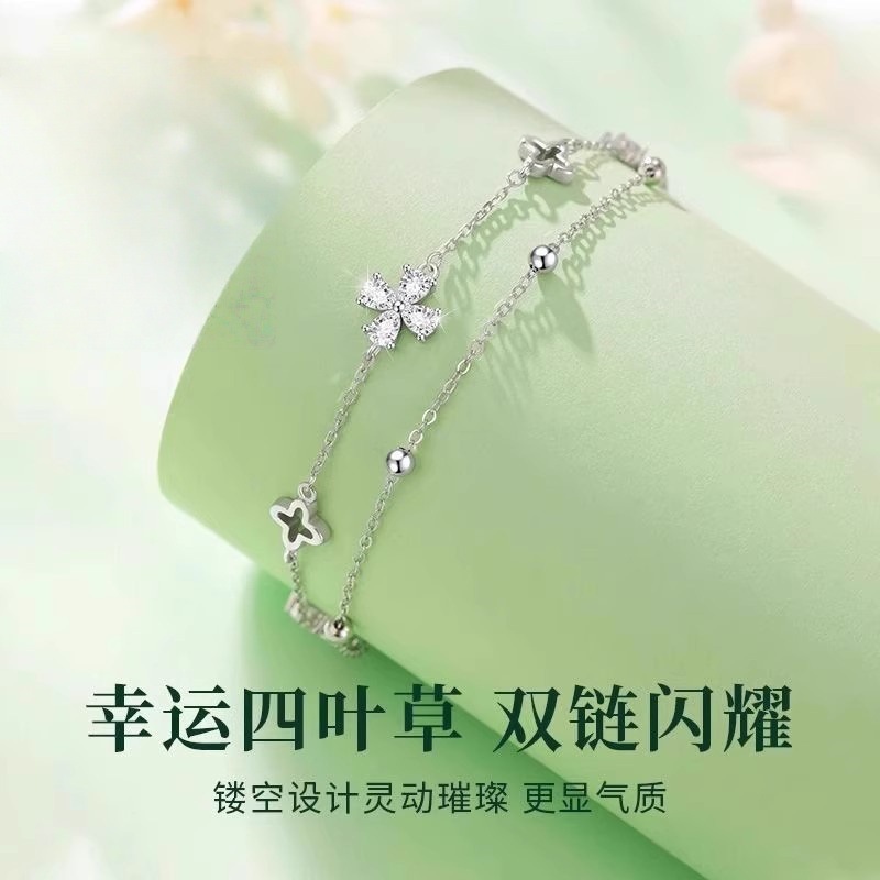 925镀银四叶草手链女款2025新款轻奢小众精致手饰闺蜜学生党礼物