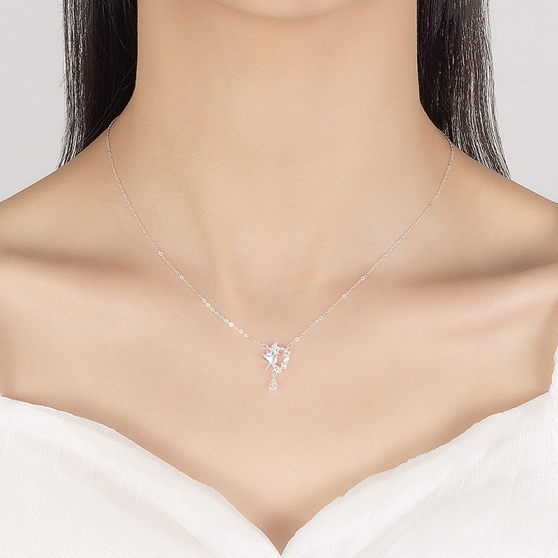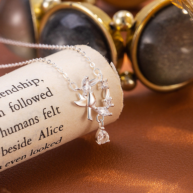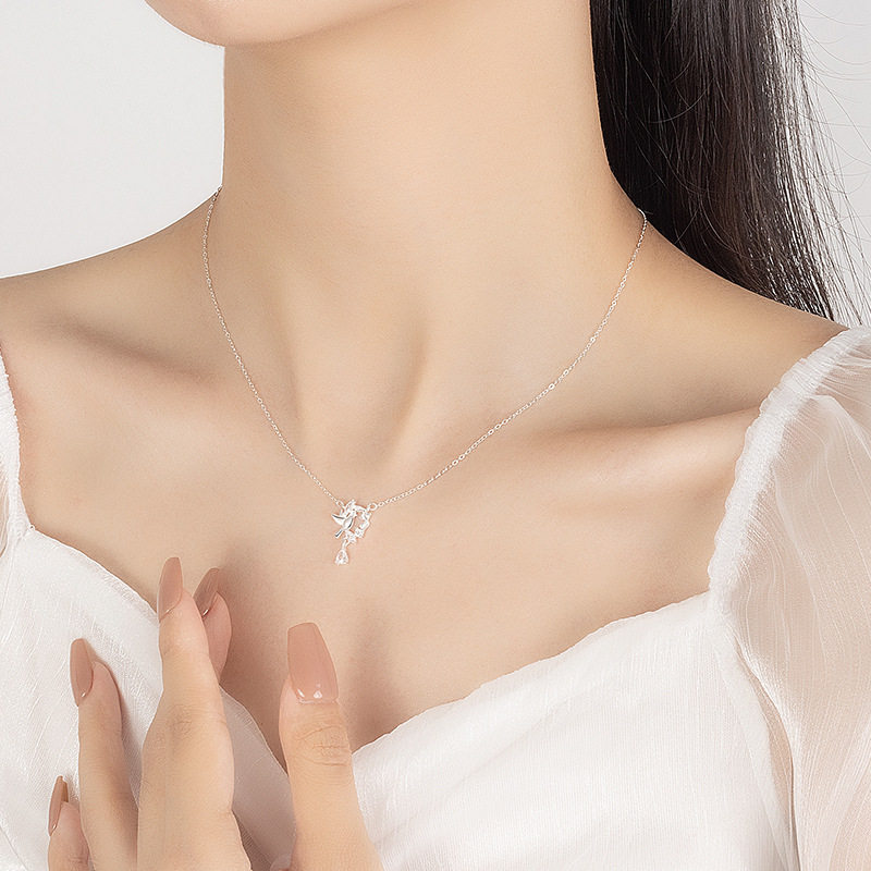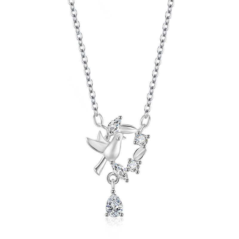 S999纯银足银蓝桉与鸟项链女小众百搭高级感锁骨链ins情人节礼物
